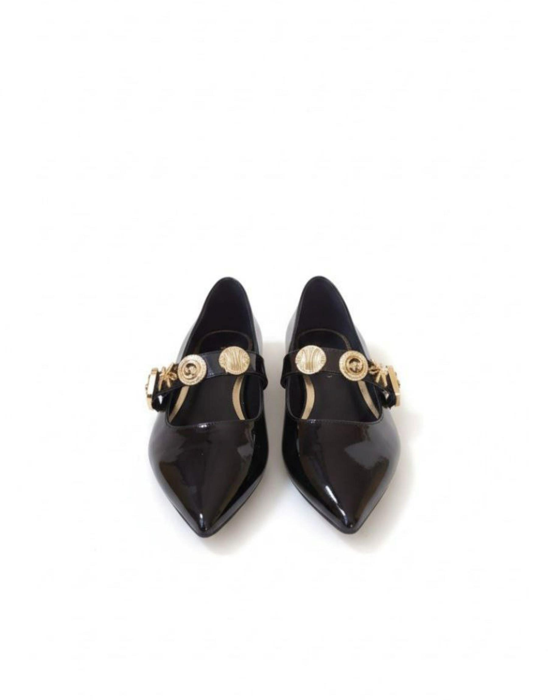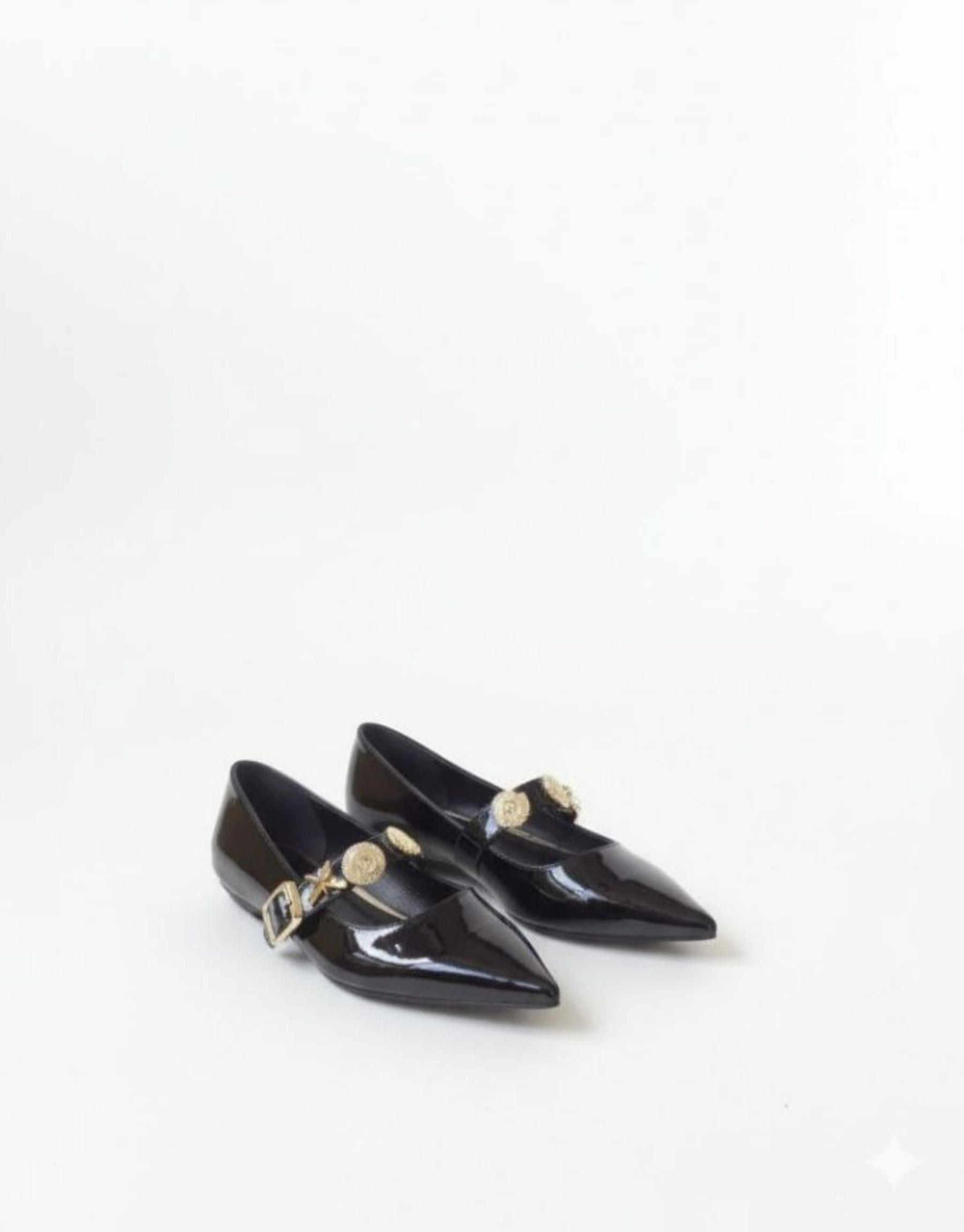 113 Yuvarlak Burun Toka Detaylı Siyah Rugan babet Siyah Rugan