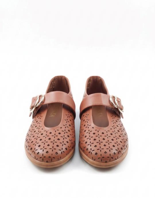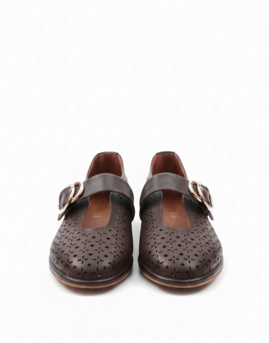 Veroni yuvarlak burun toka detaylı vegan deri babet | emienza