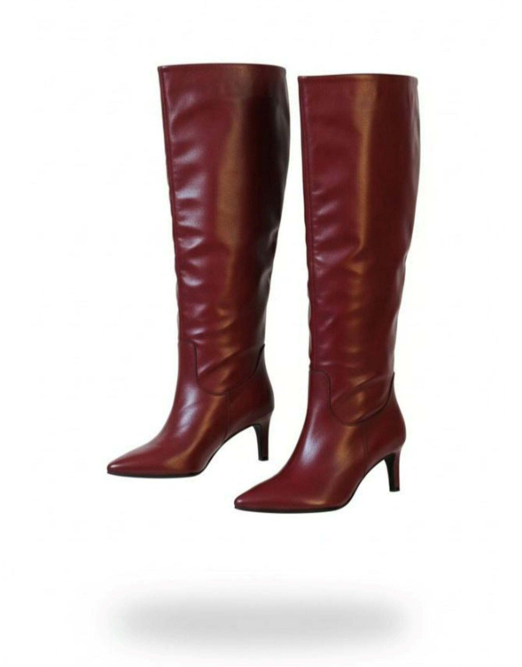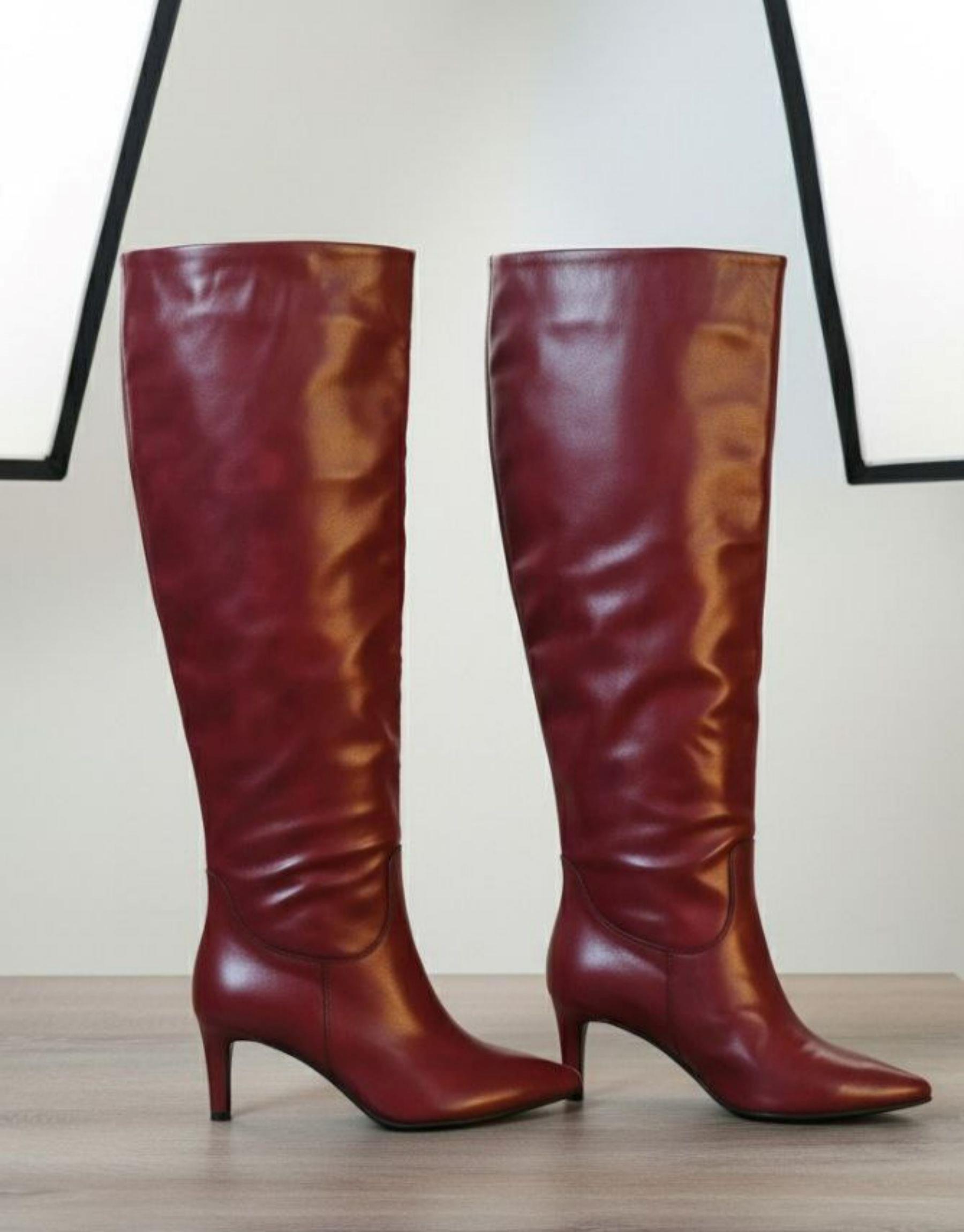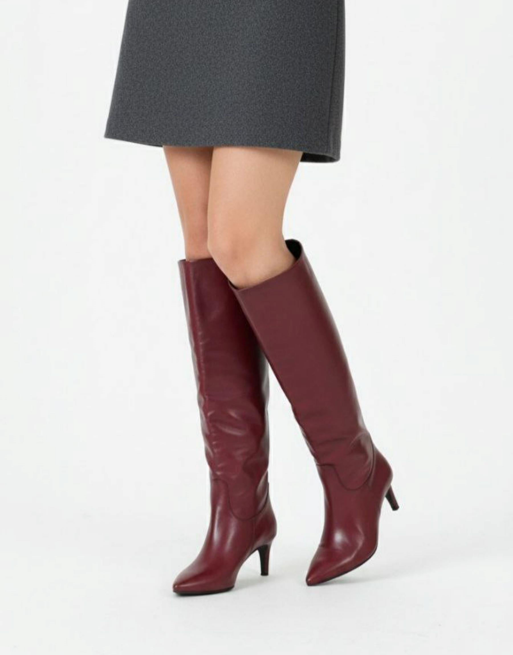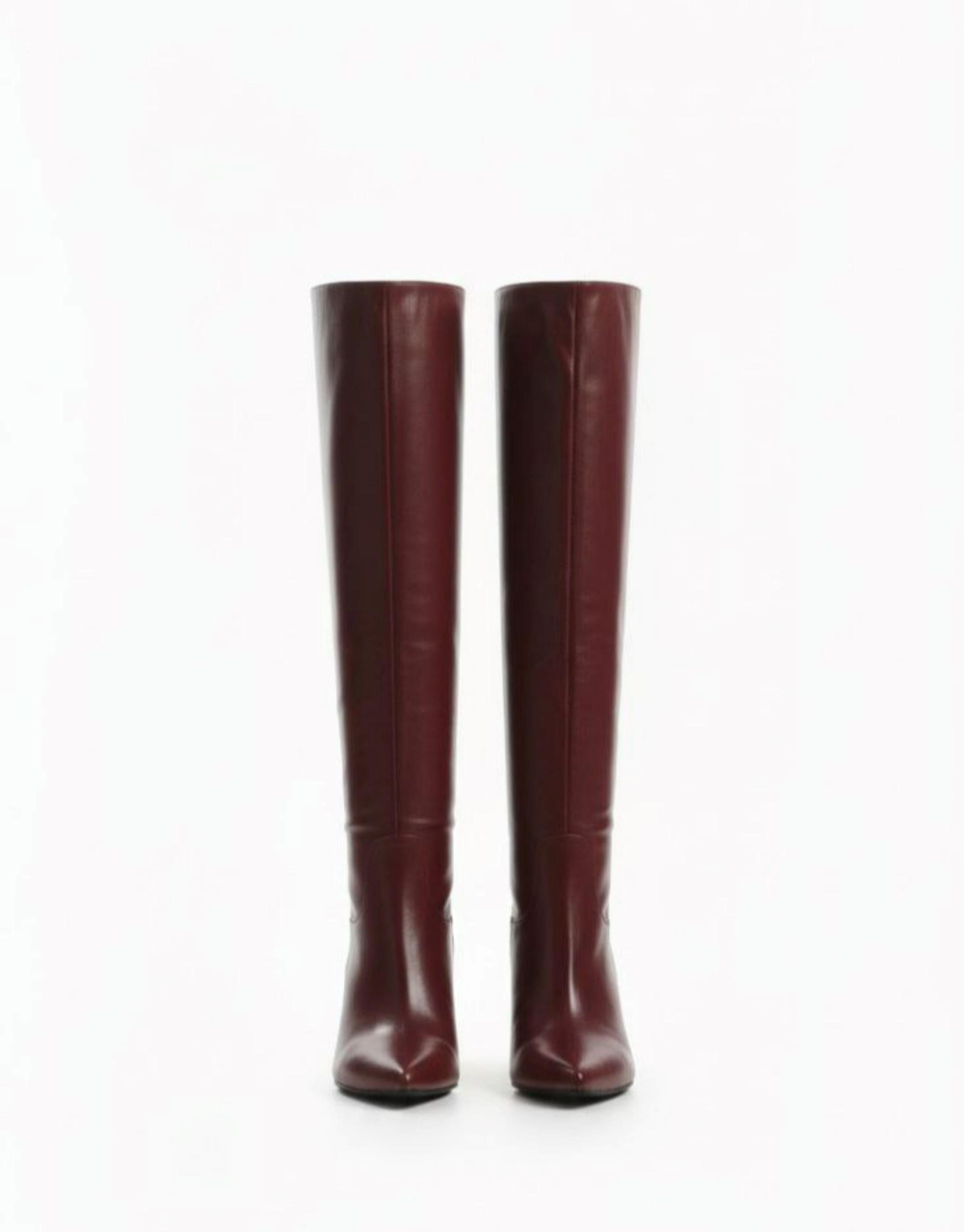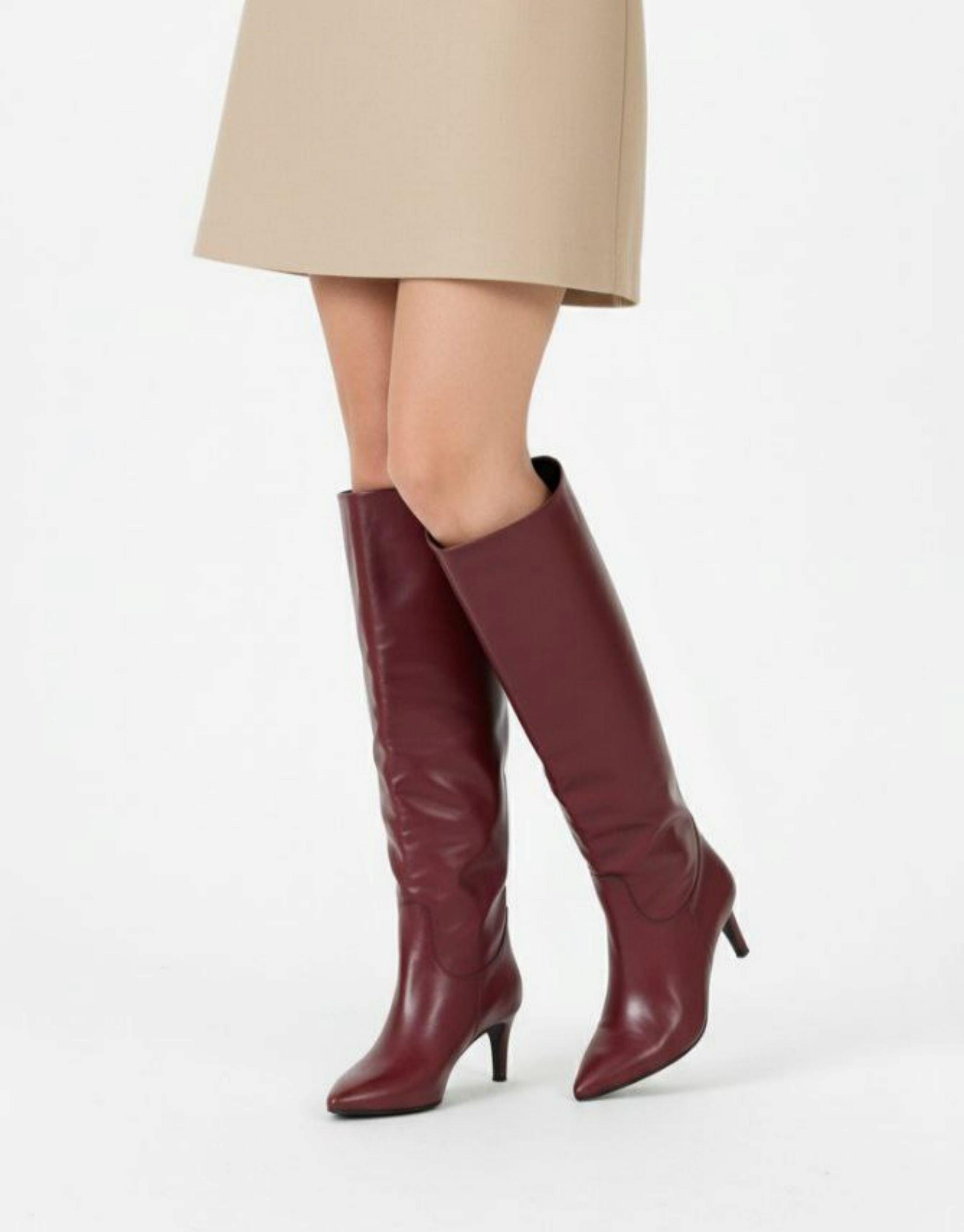 Çizi toka detaylı küt burun kahve deri çizme Kahve