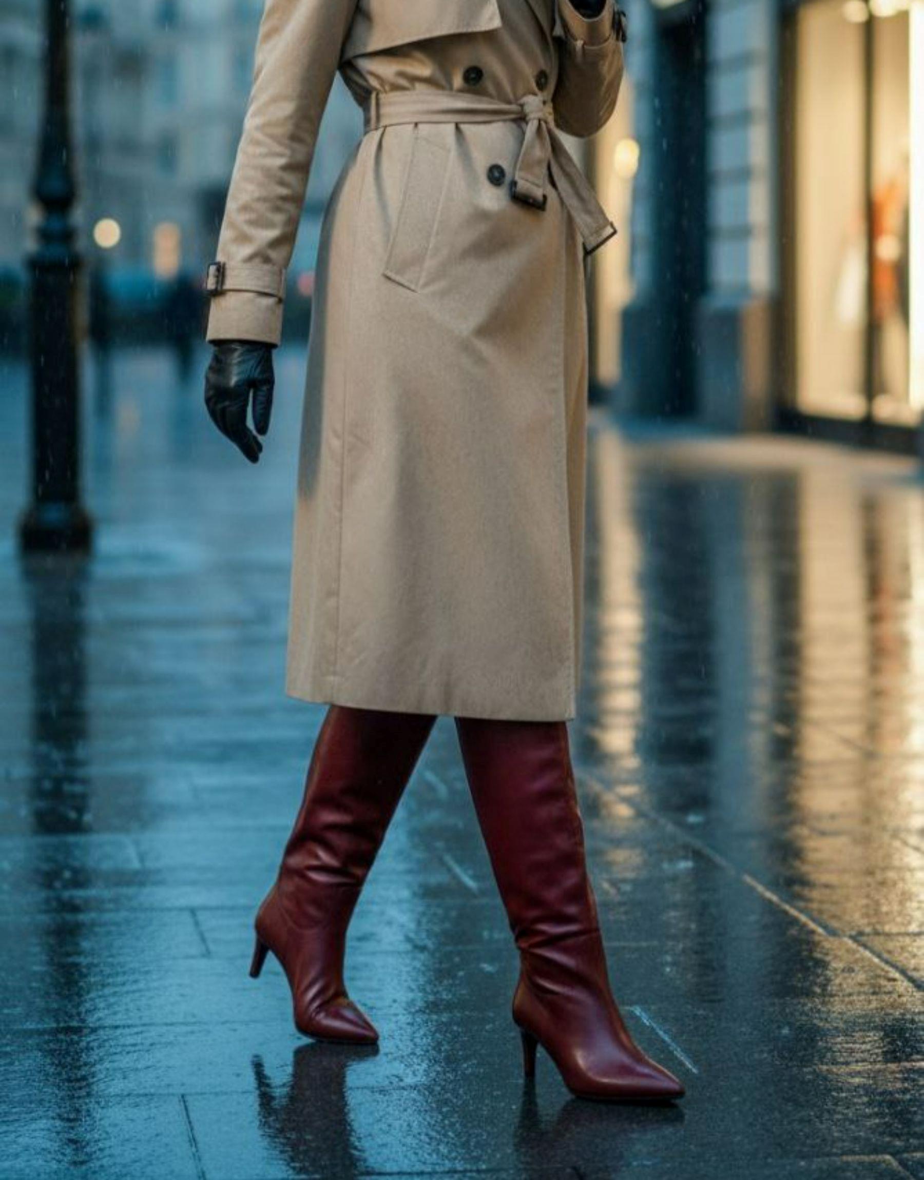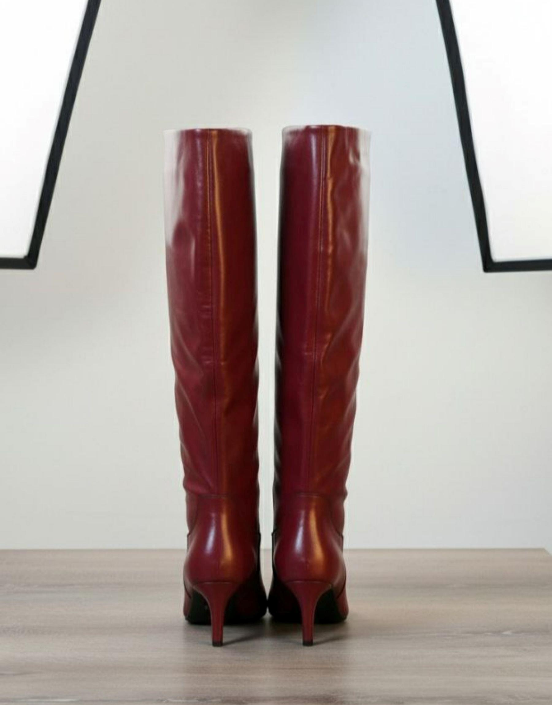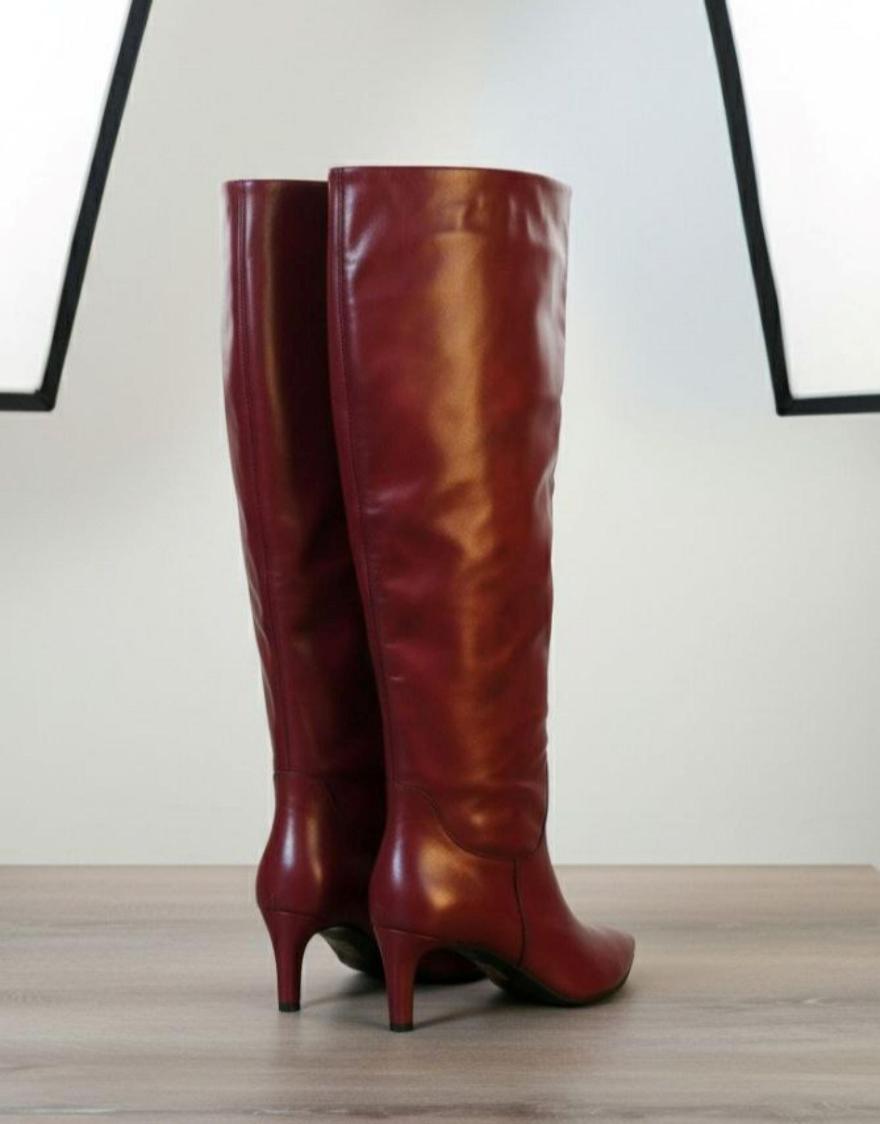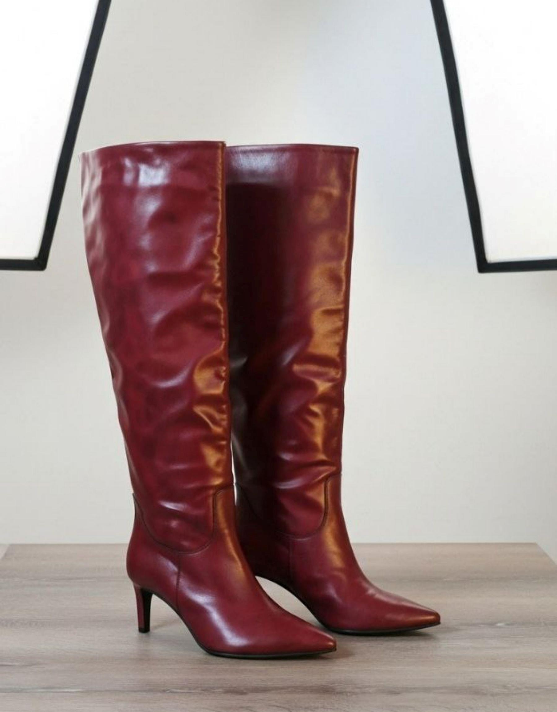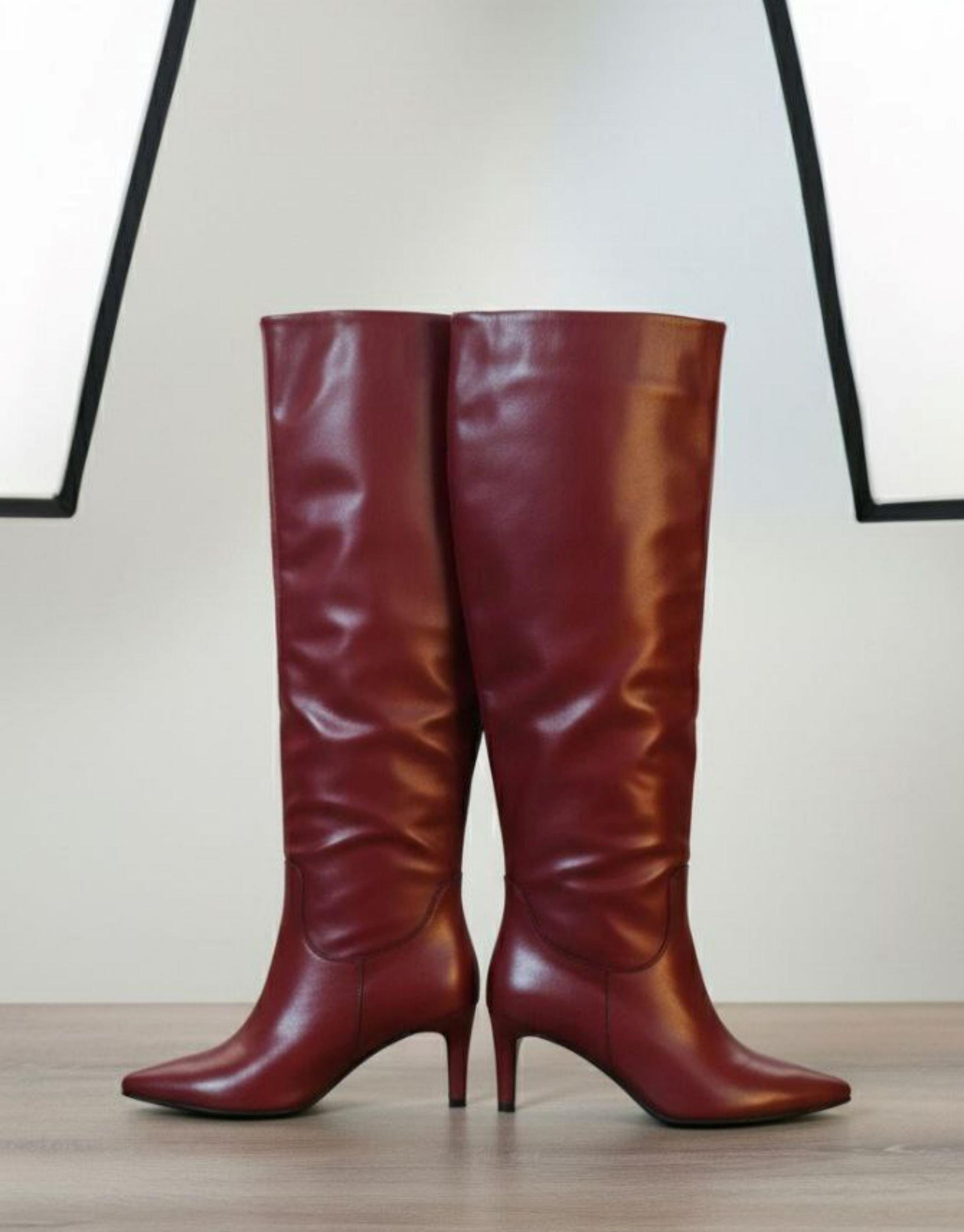 Çizi toka detaylı küt burun kahve deri çizme Kahve