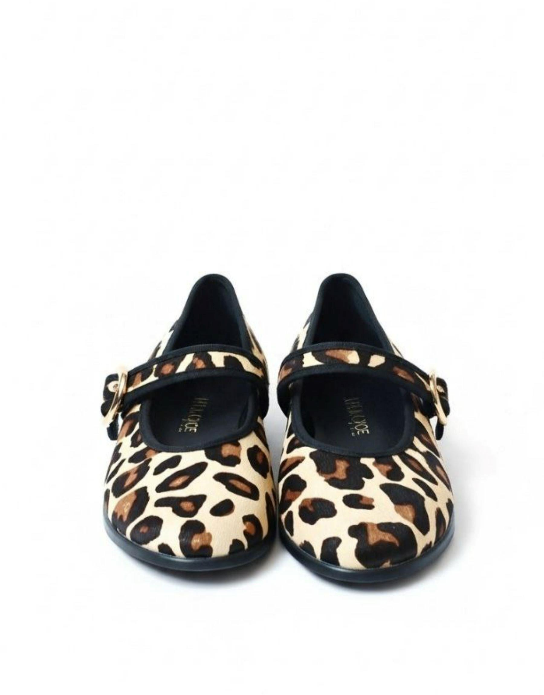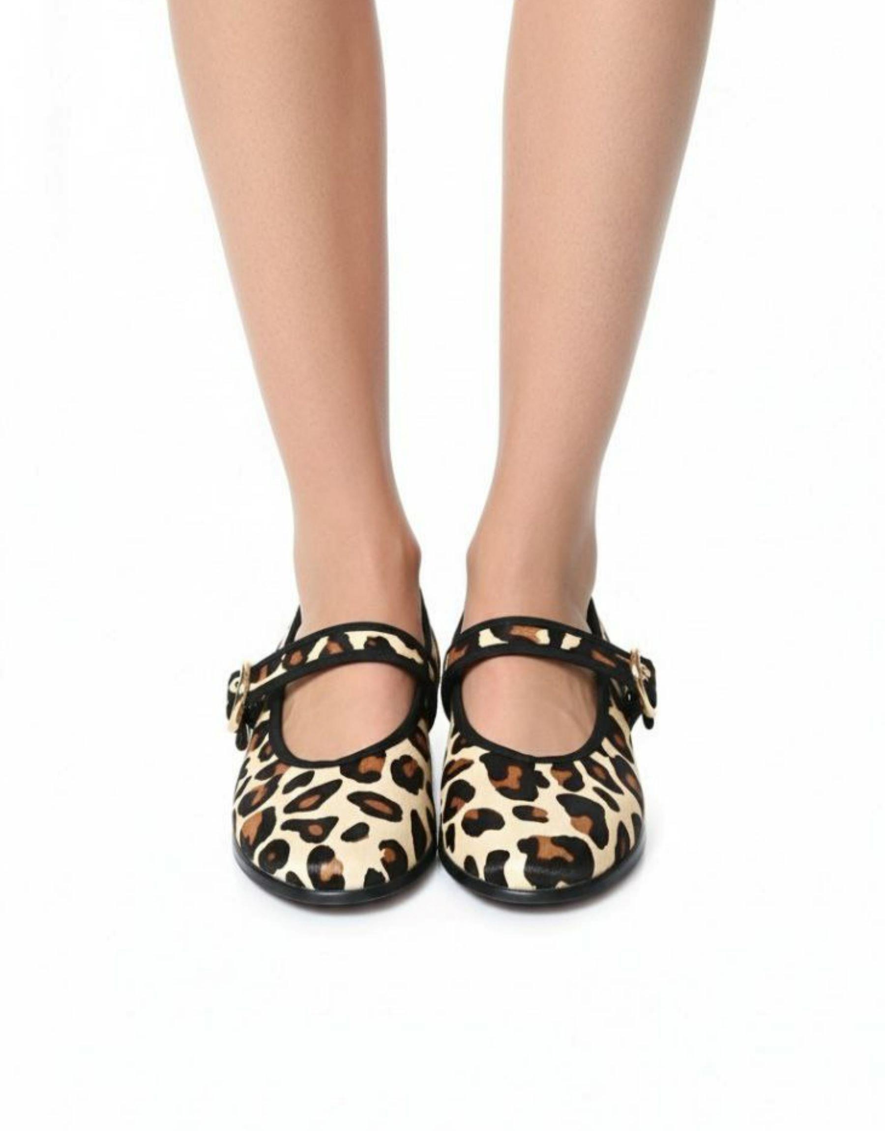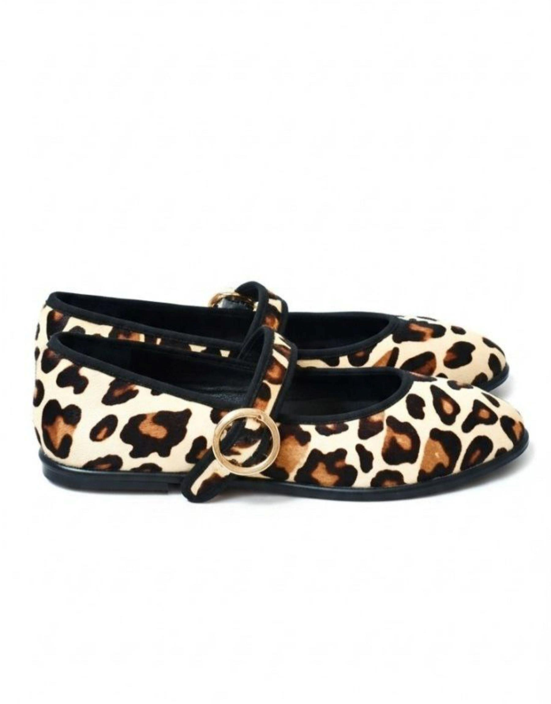 114 Yuvarlak Burun Toka Detaylı Leopar Deri Babet Leopar
