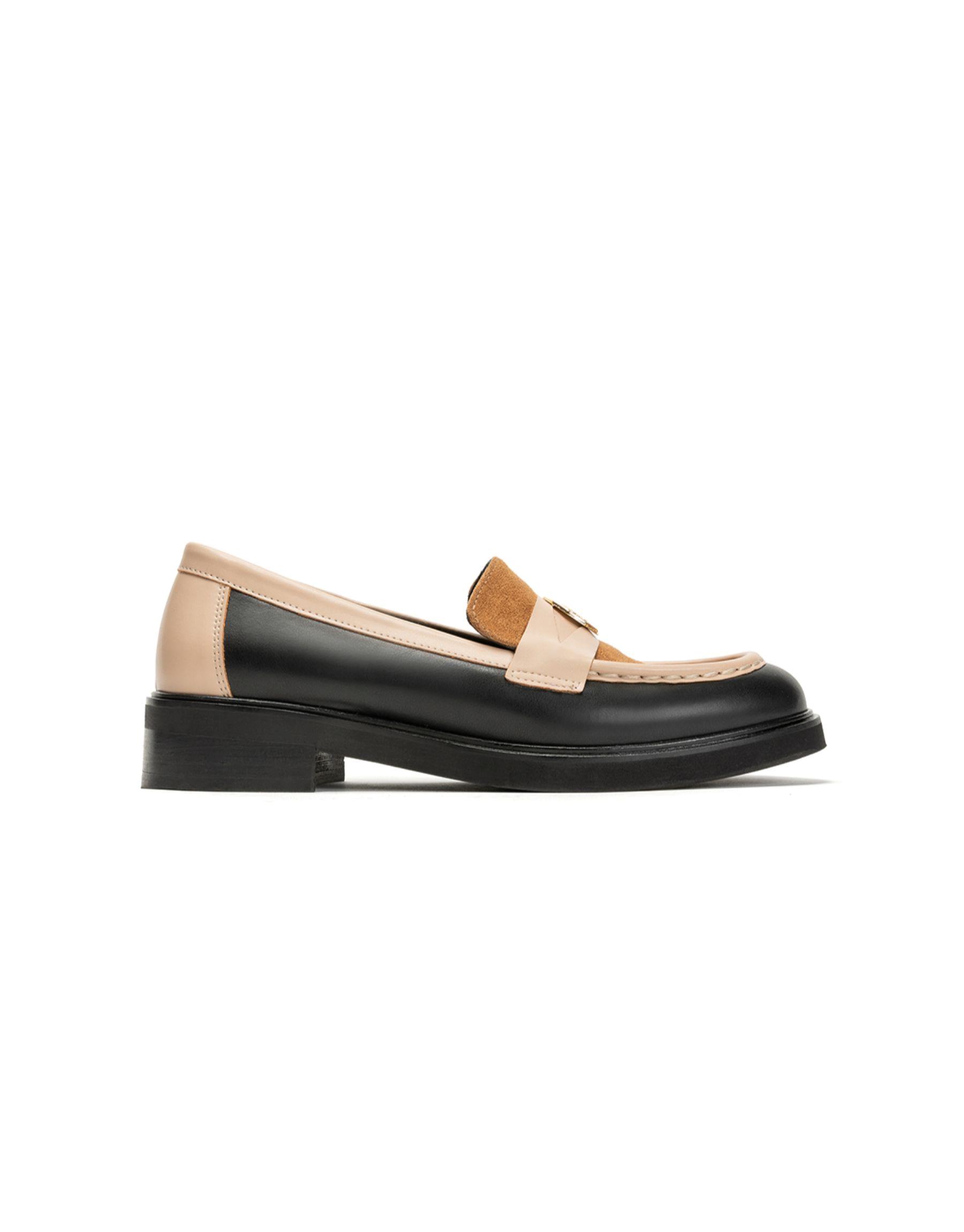 Hera Bantlı Altın Broş Detaylı Kalın Tırtıklı Kadın Loafer Siyah