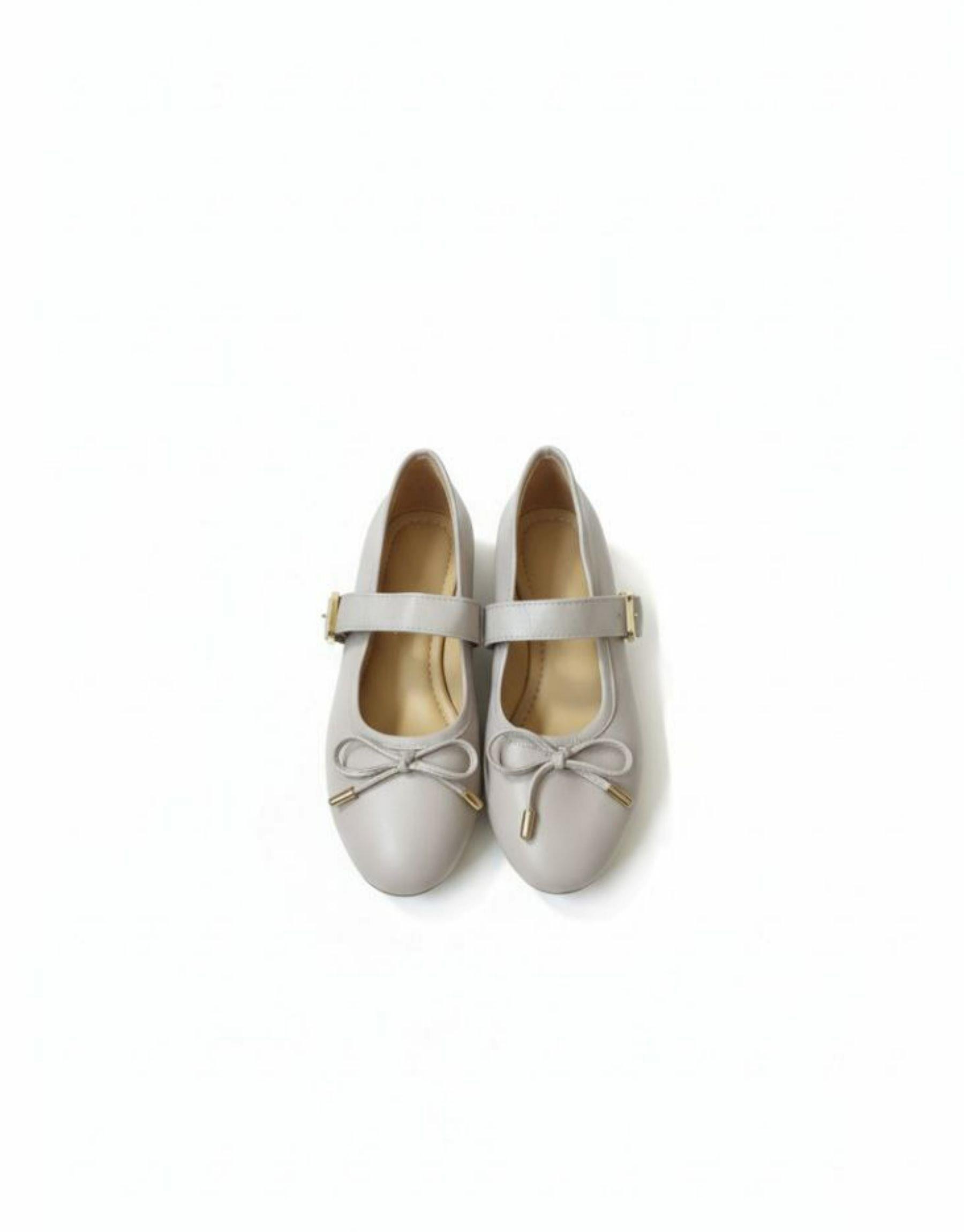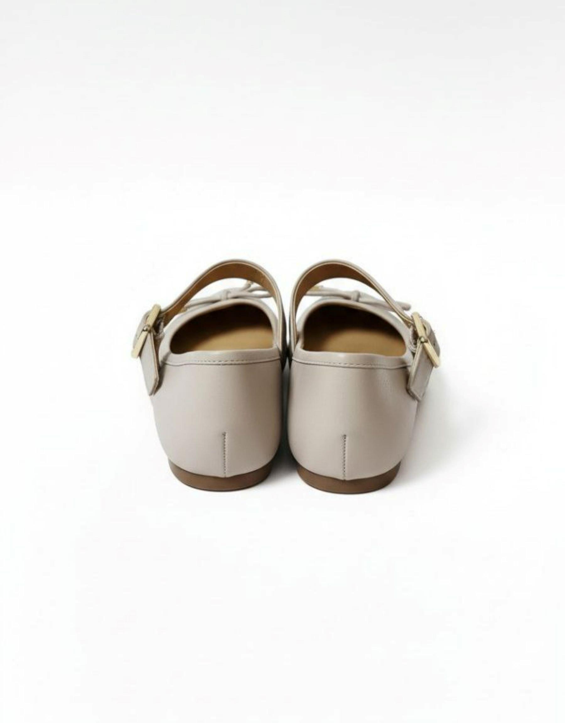 111 Yuvarlak Burun Toka ve Psifiyonk Detaylı Ten Deri Babet Ten