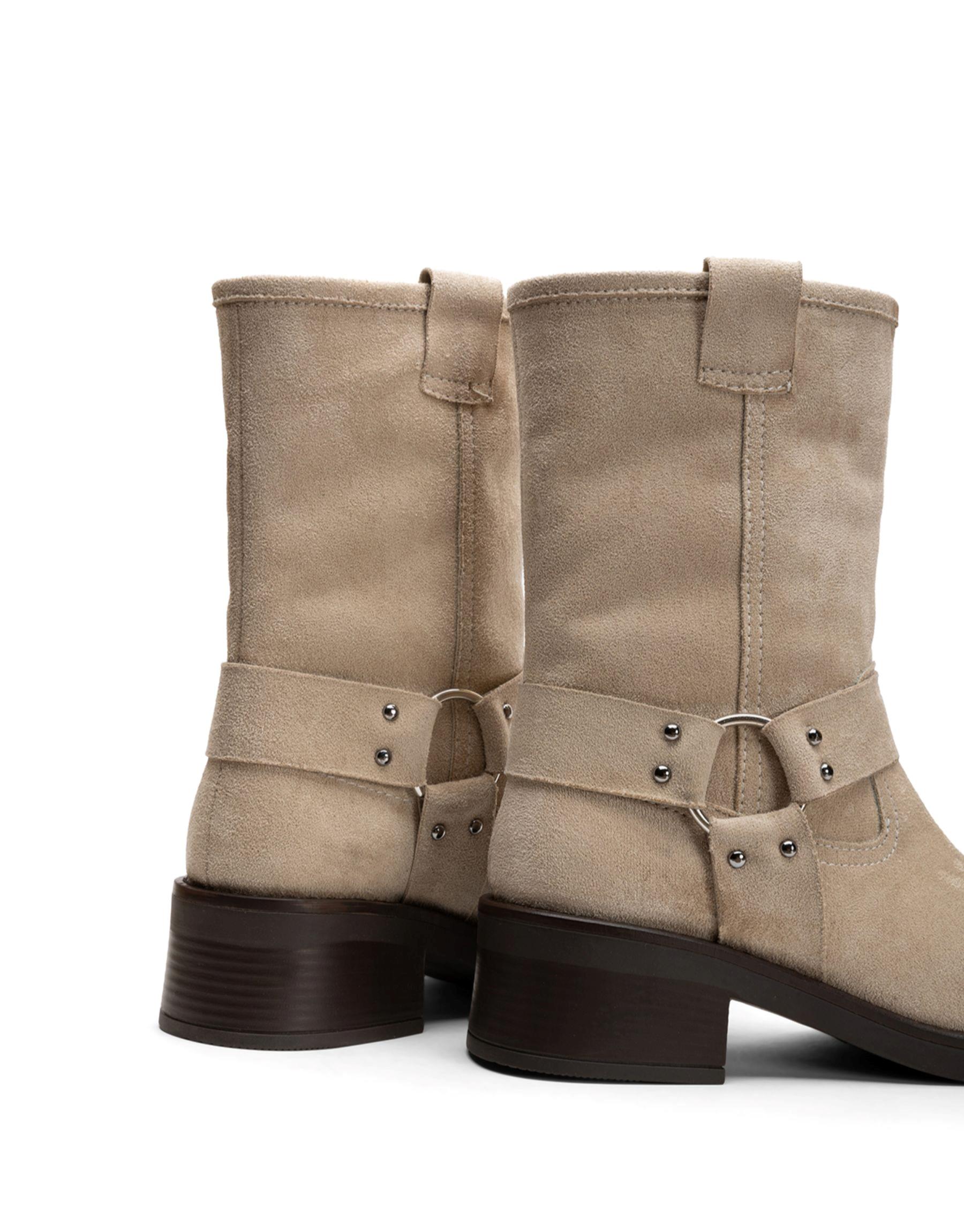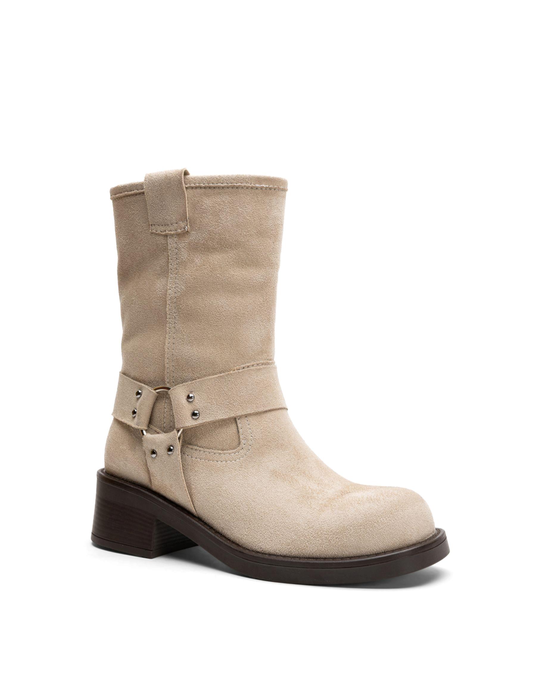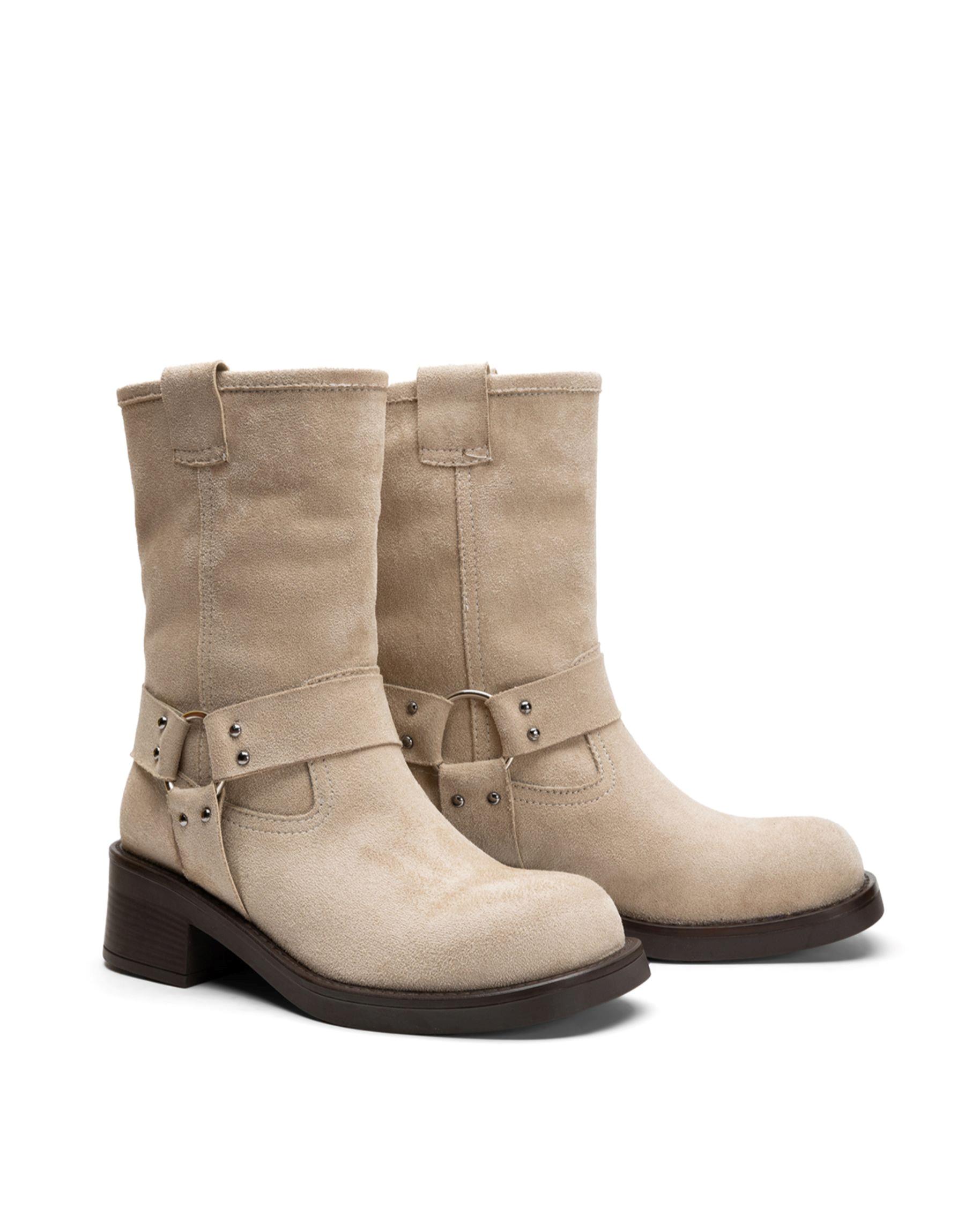 Helios İşlemeli Trok Detaylı Deri Bot Bej