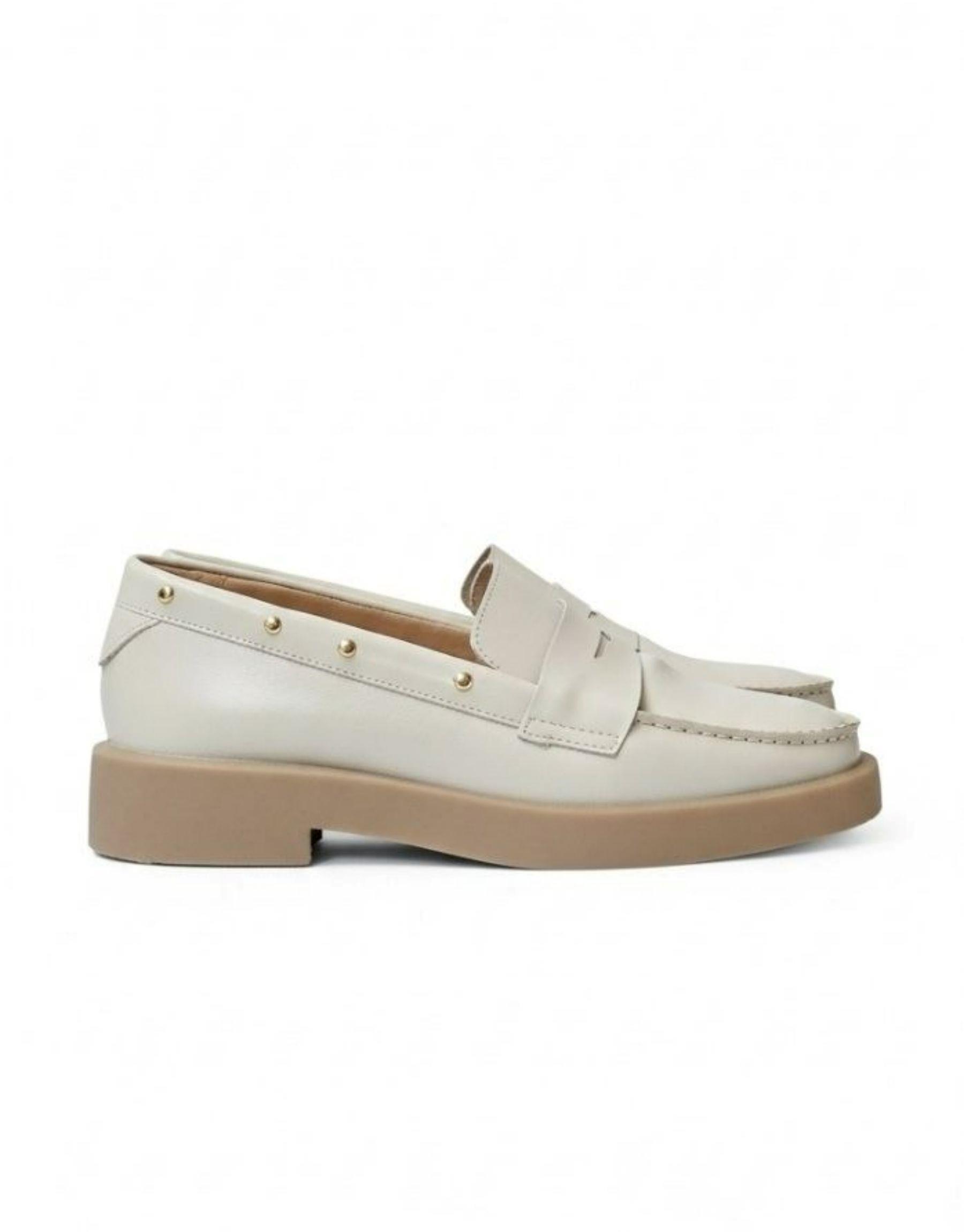 Twinix Bağcıklı Çiftyüz Zımba Detaylı Kalın Tırtıklı Tabanlı Kadın Loafer- Taba
