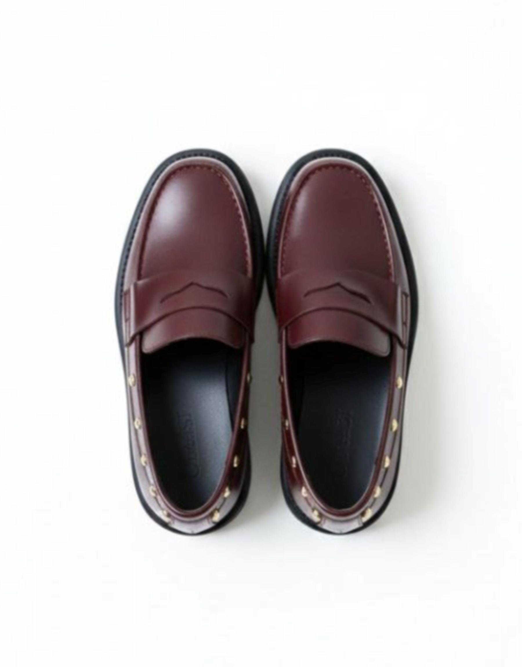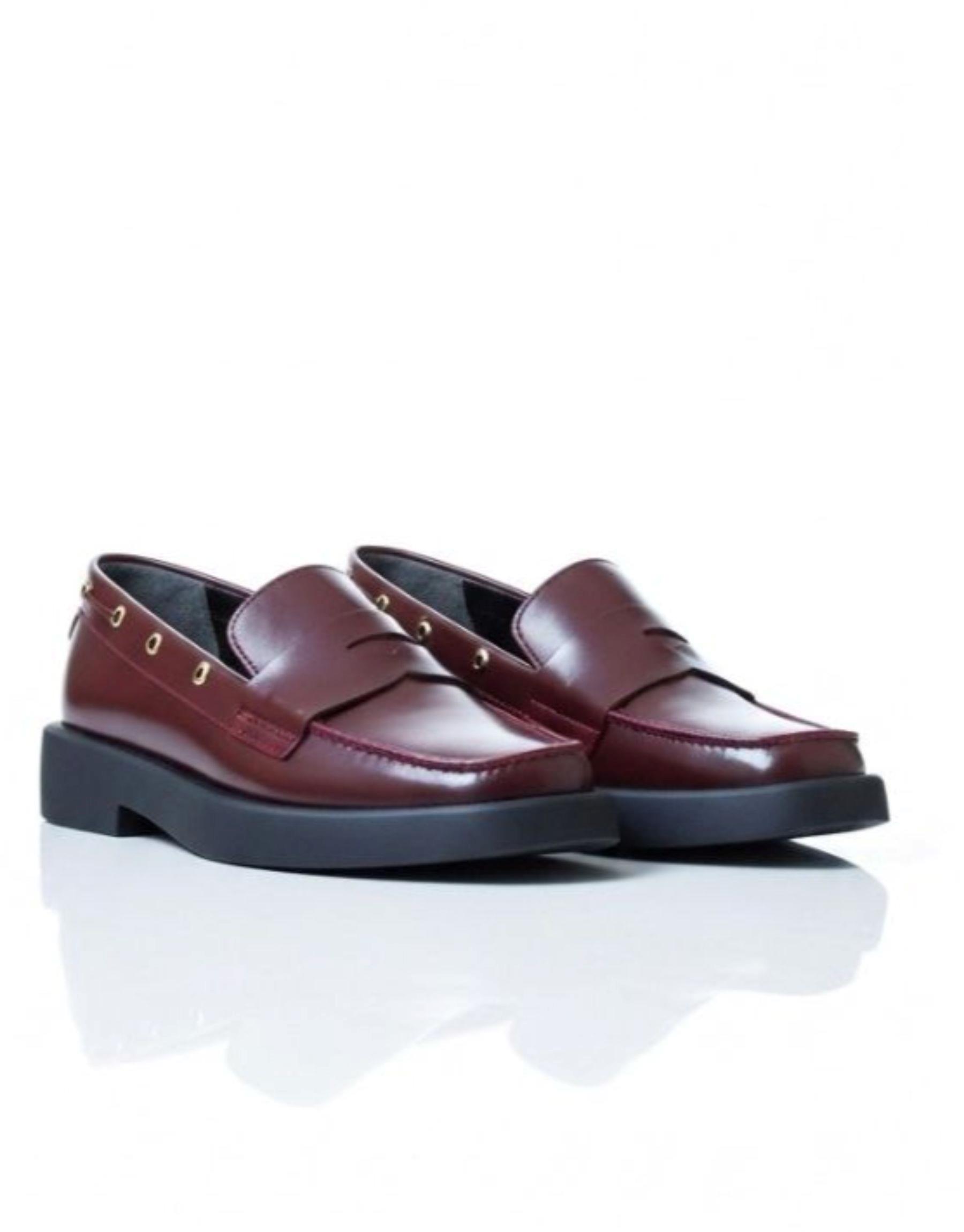 Hera Bantlı Altın Broş Detaylı Kalın Tırtıklı Kadın Loafer- Bordo
