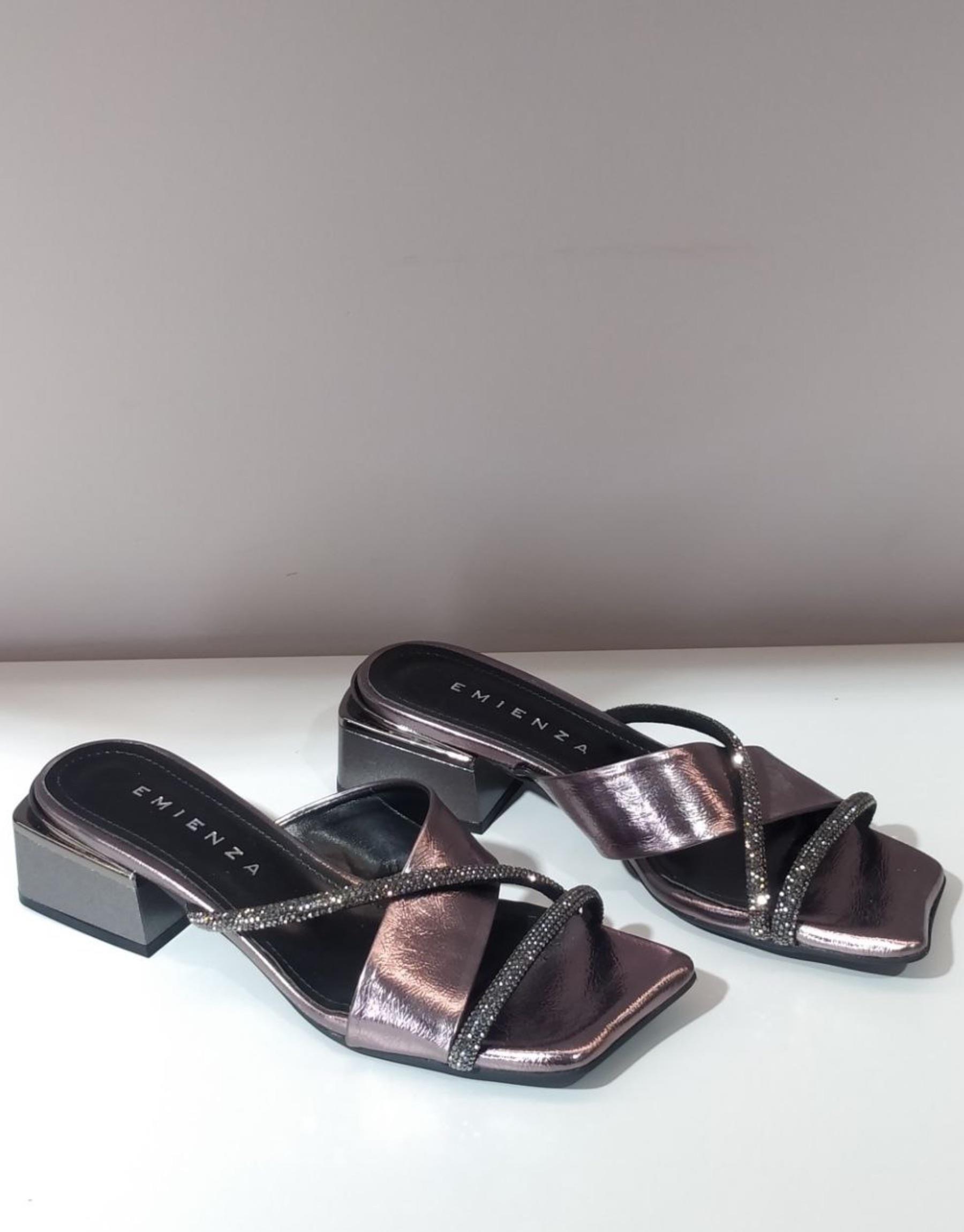 Ancel Çapraz Taşlı Bantlı Kırışıkı Rugan Detaylı Kare Topuk Terlik | emienza