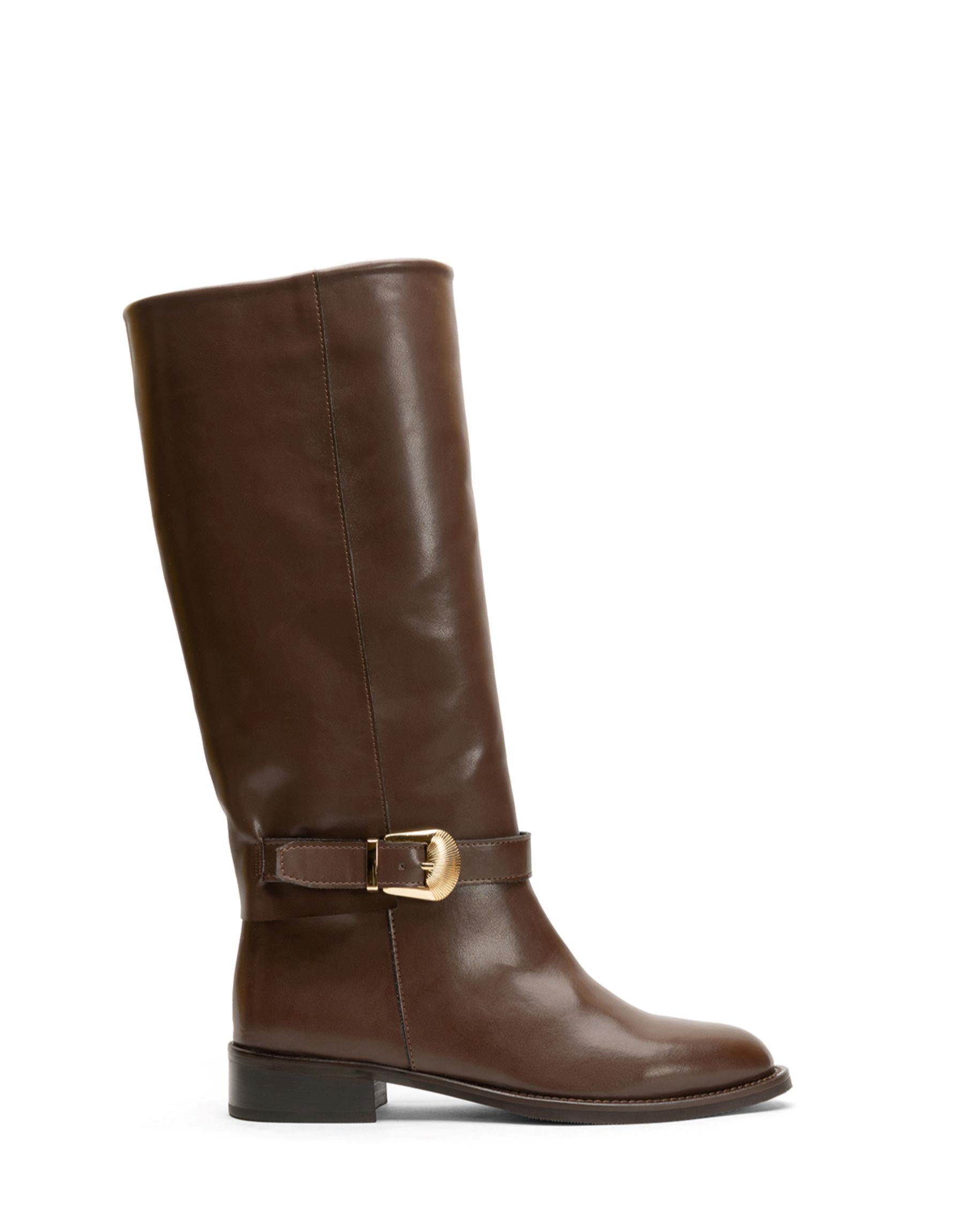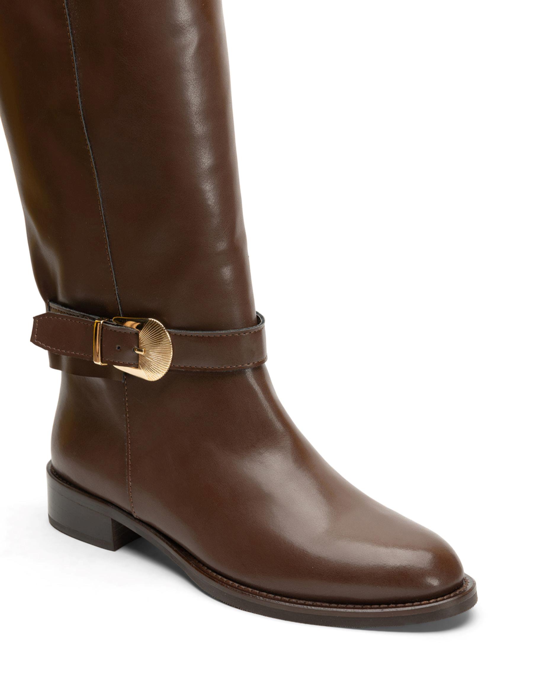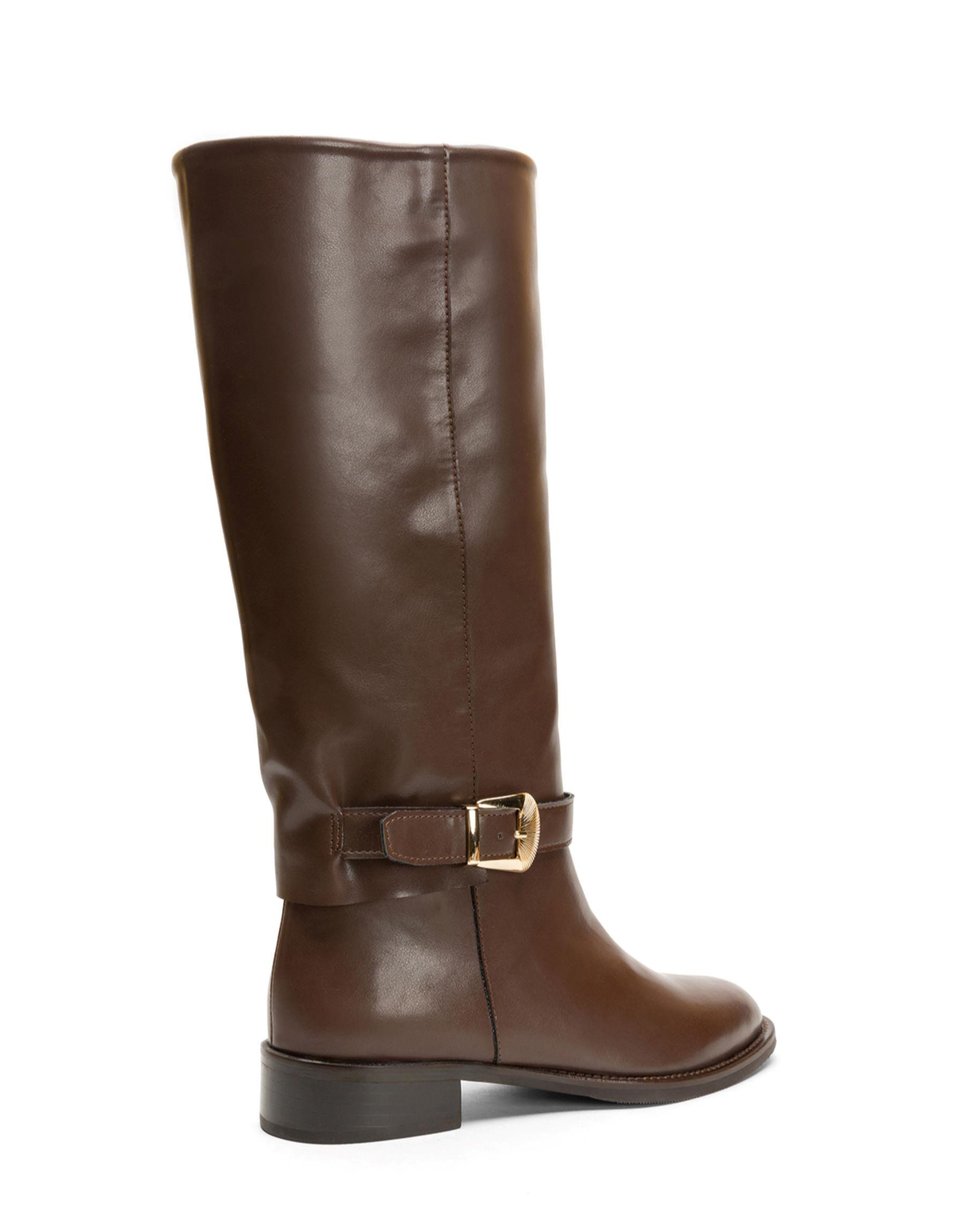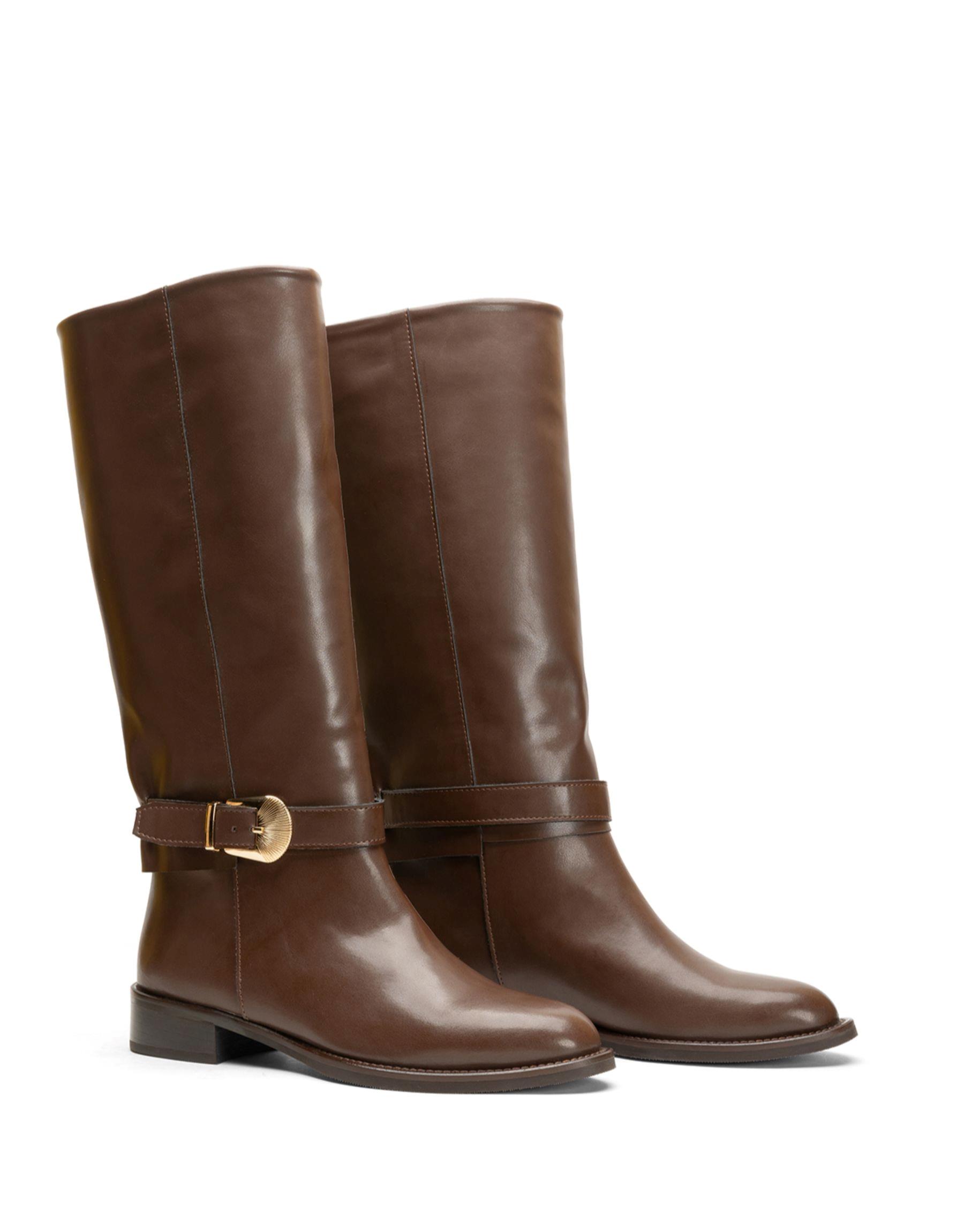 Çizi toka detaylı küt burun kahve deri çizme Kahve