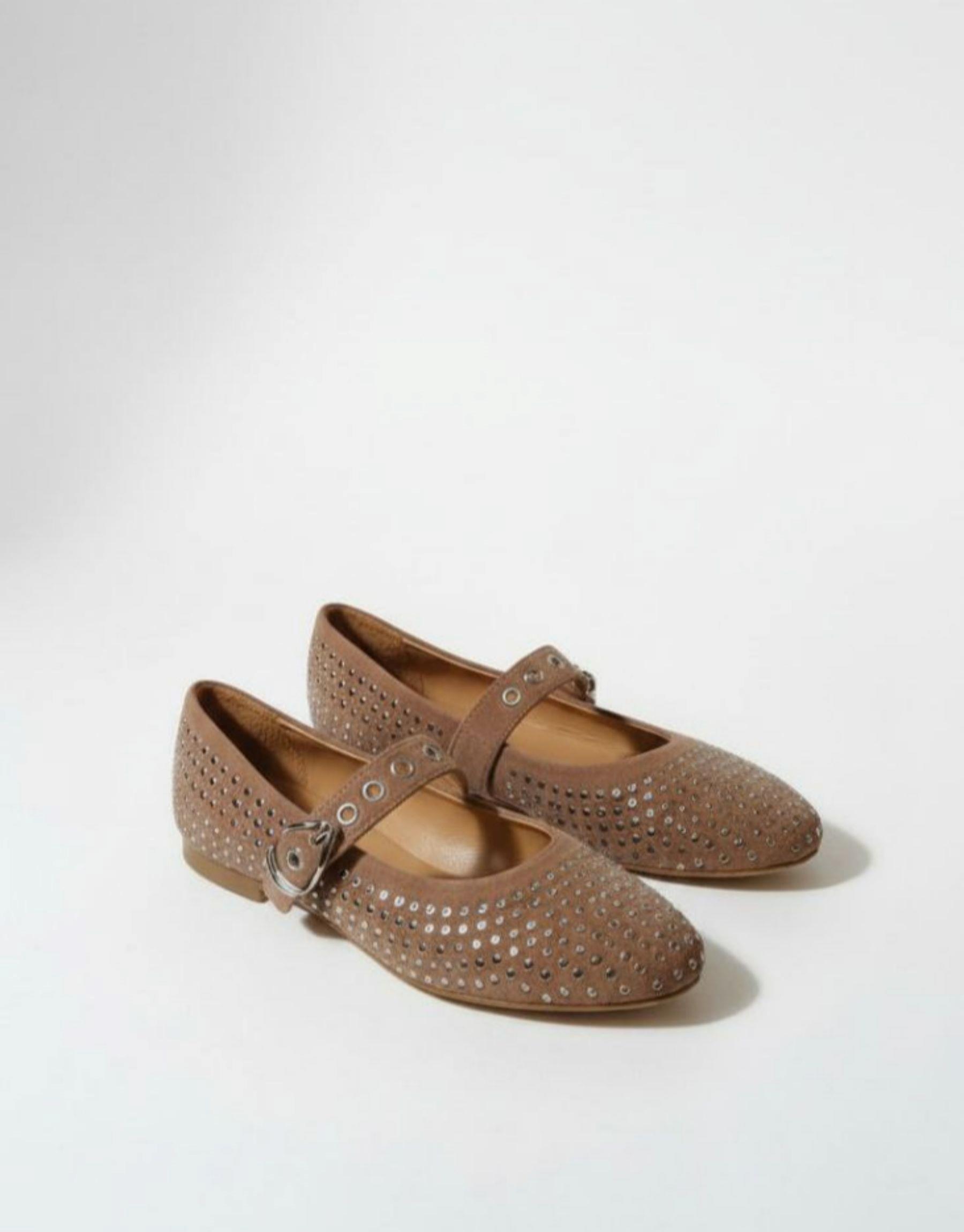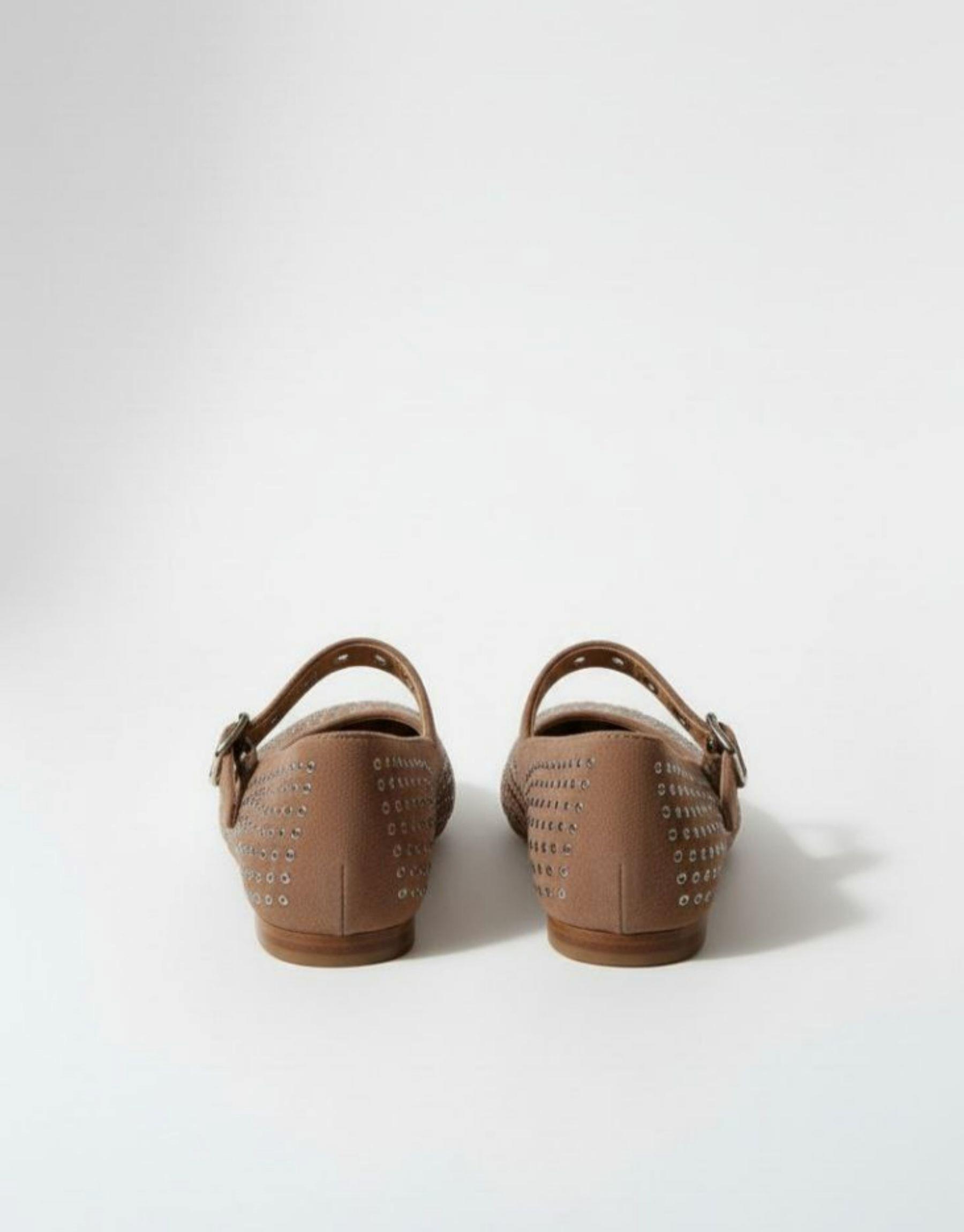 111 Yuvarlak Burun Toka ve Psifiyonk Detaylı Ten Deri Babet Ten