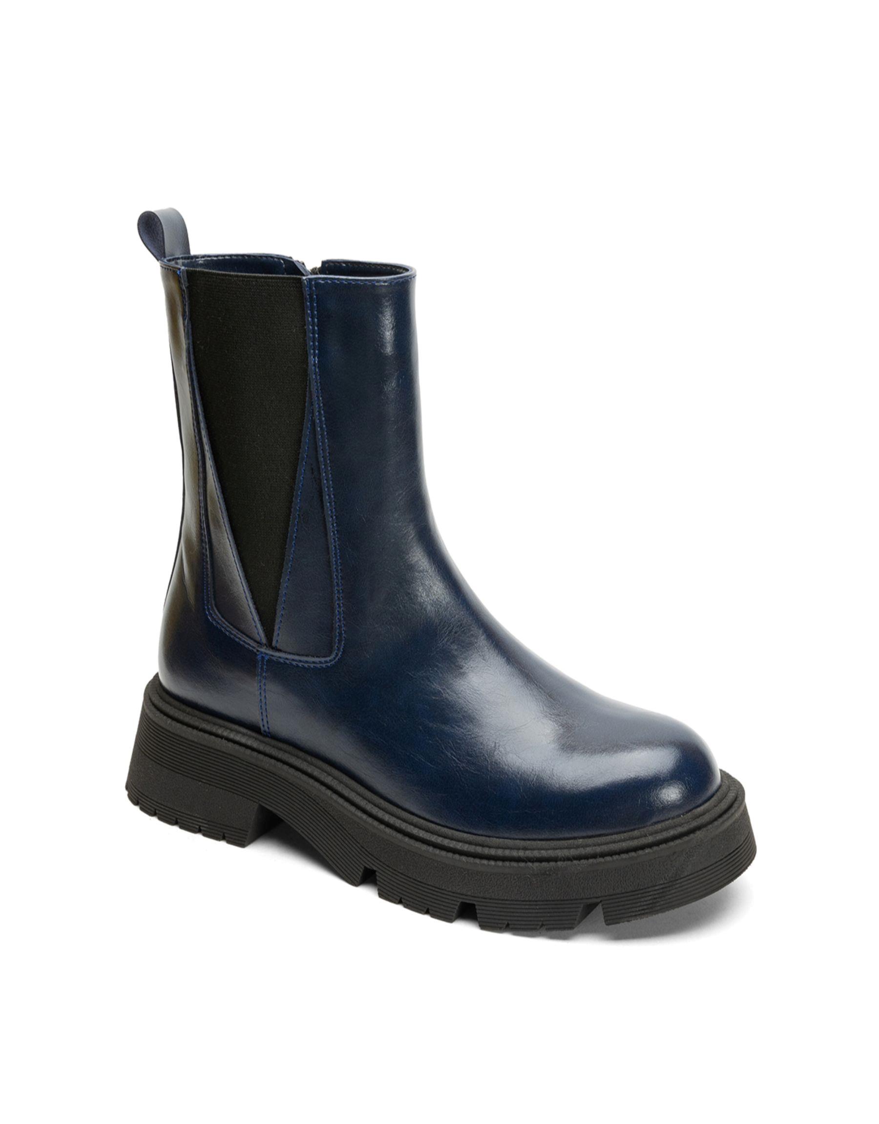Square küt burun streç siyah deri bot Siyah