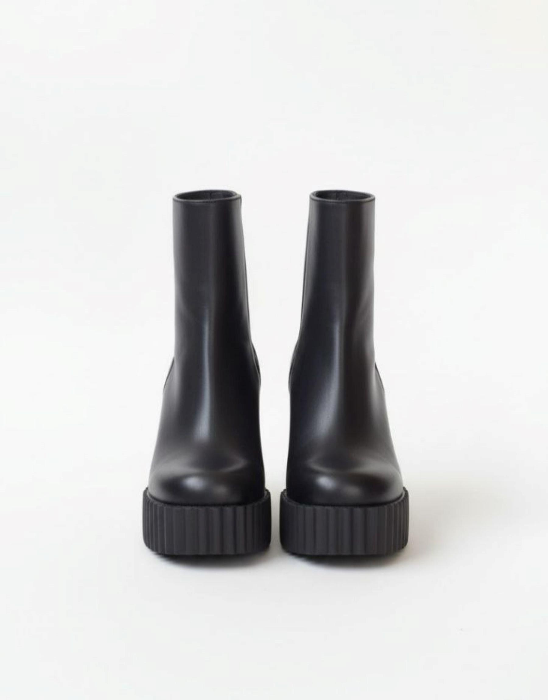 Square küt burun streç siyah deri bot Siyah