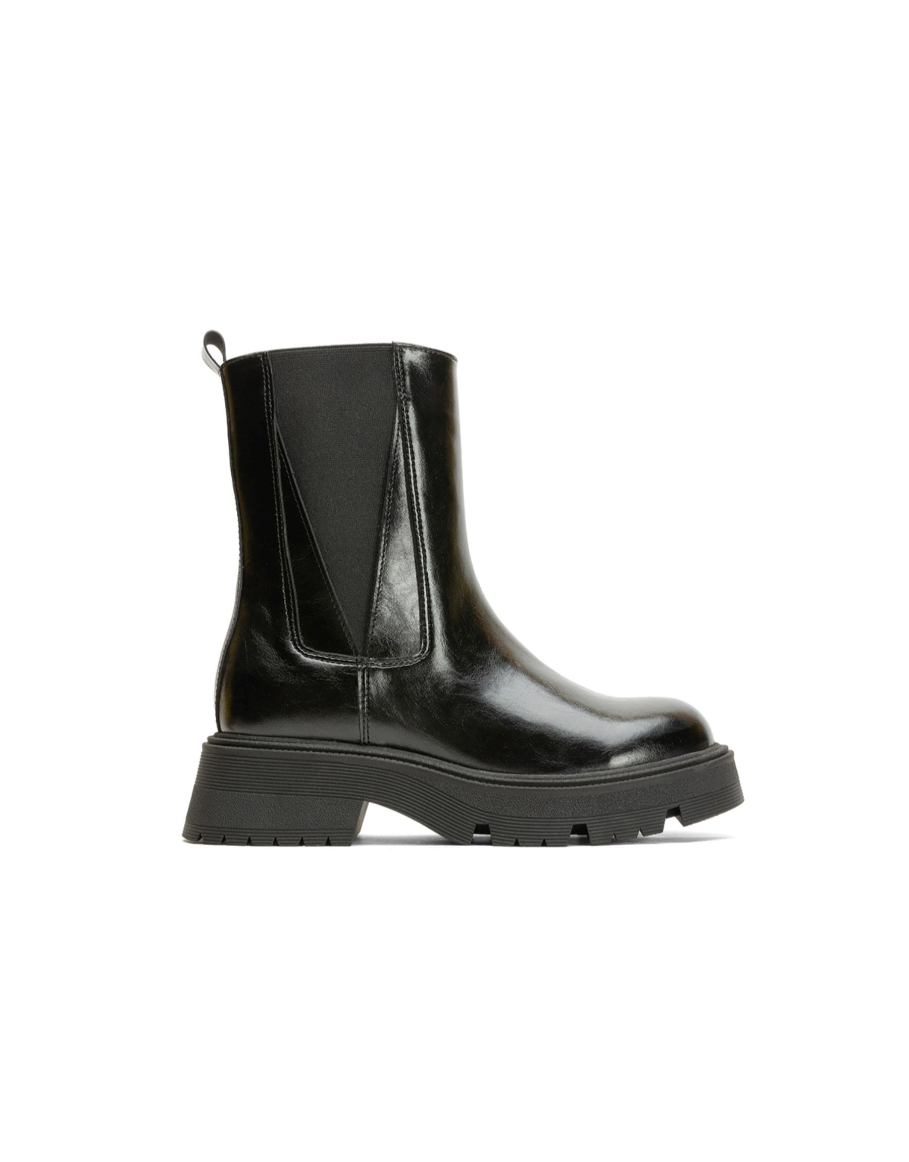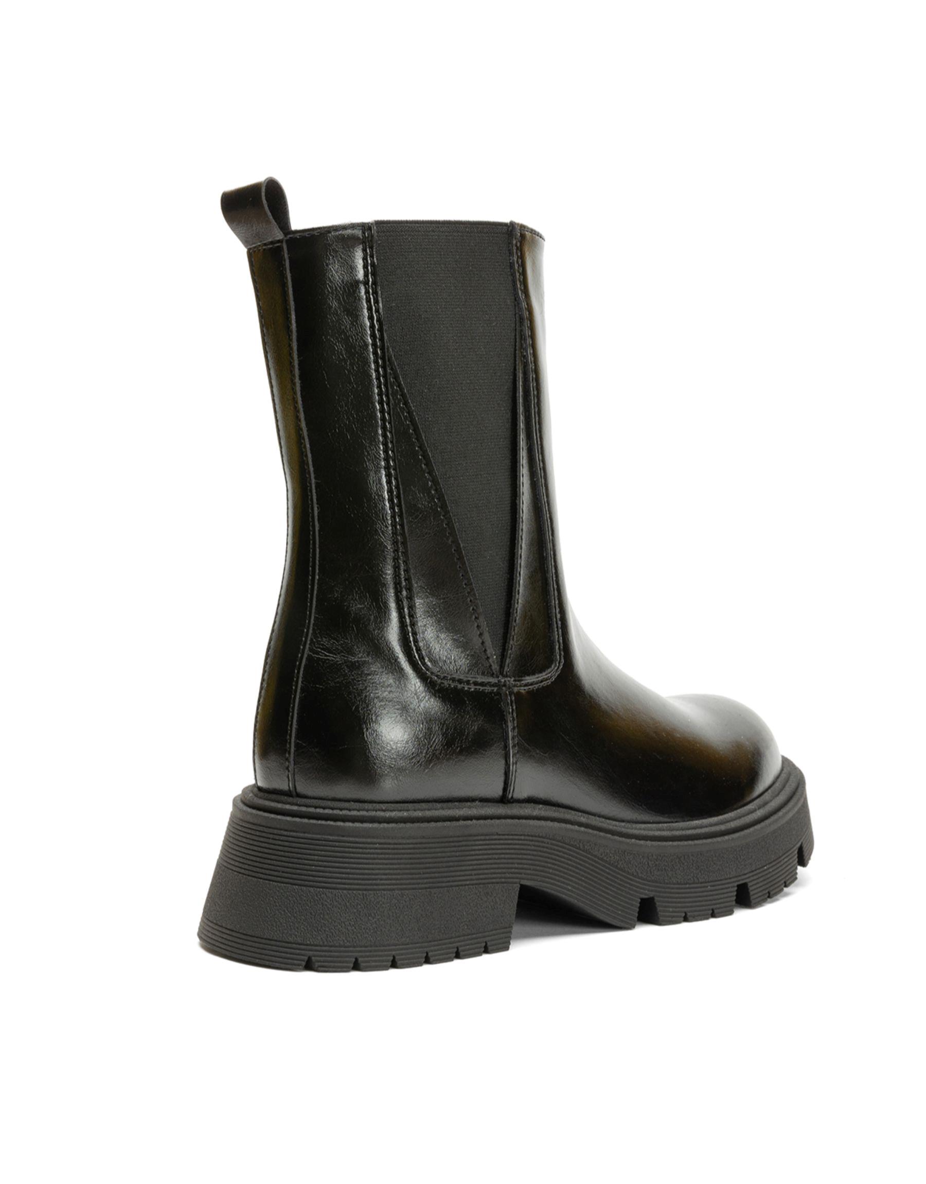 Square küt burun streç siyah deri bot Siyah