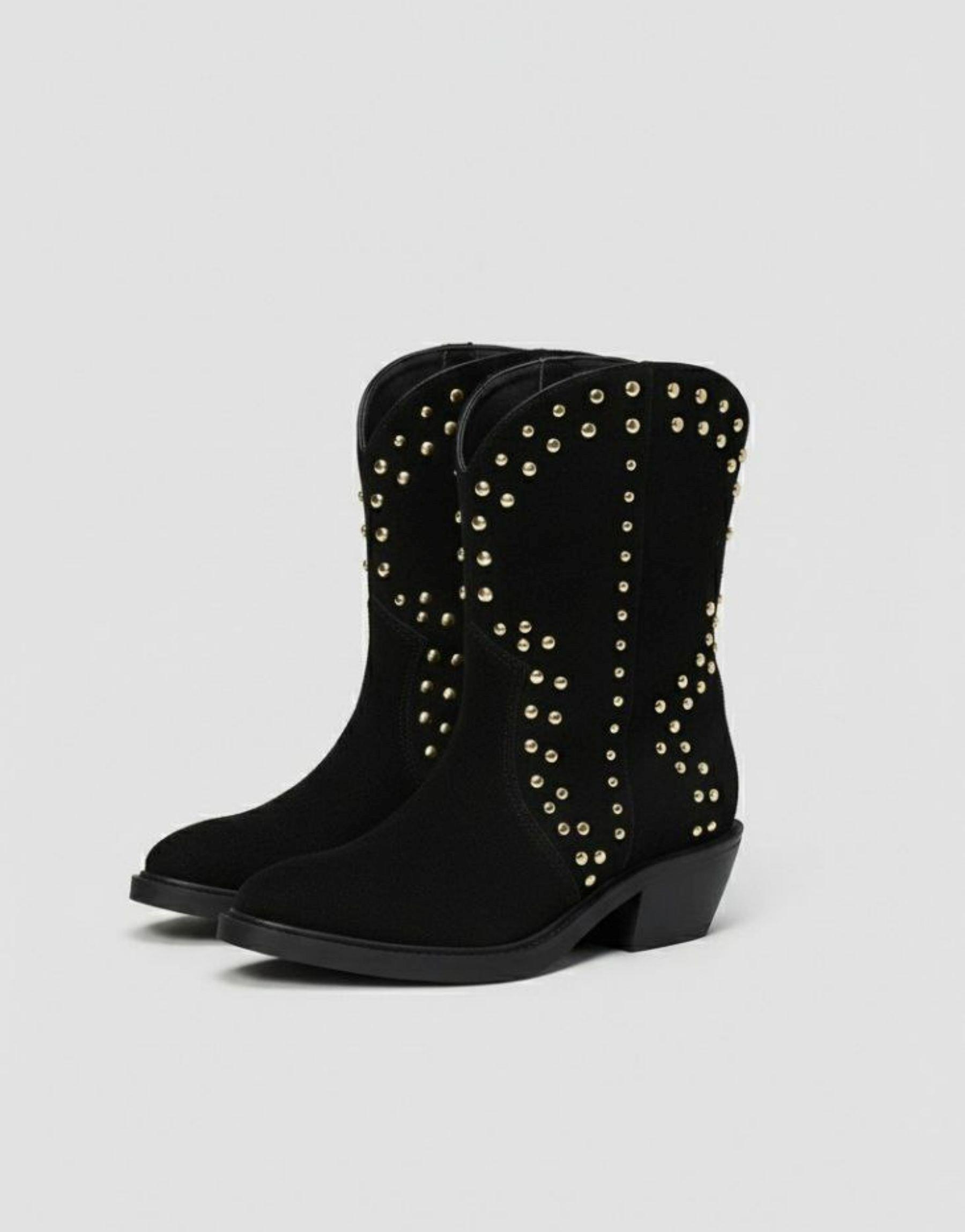 Stoned kovboy küt burun efektli kahve deri bot Kahve