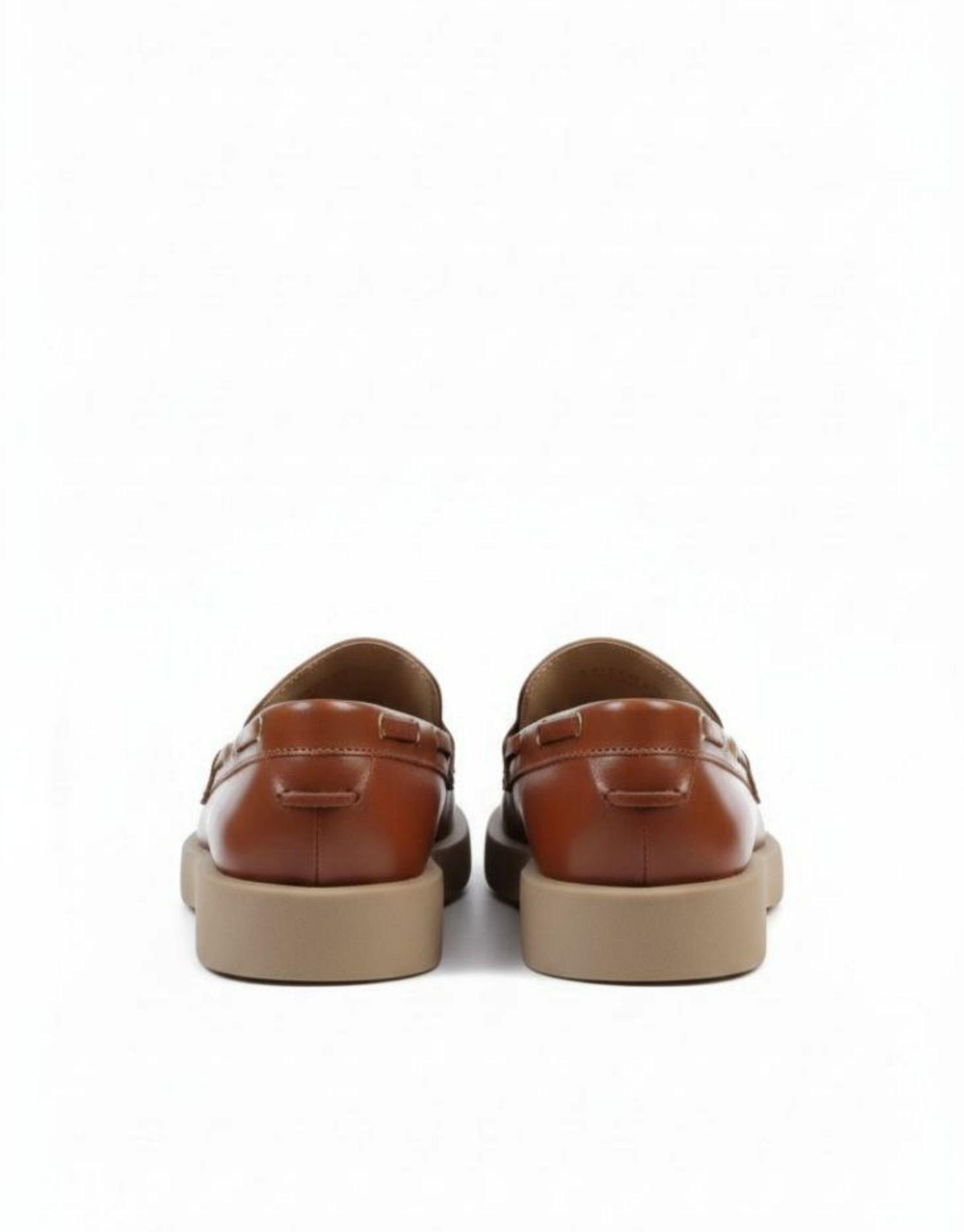 Twinix Bağcıklı Çiftyüz Zımba Detaylı Kalın Tırtıklı Tabanlı Kadın Loafer- Taba