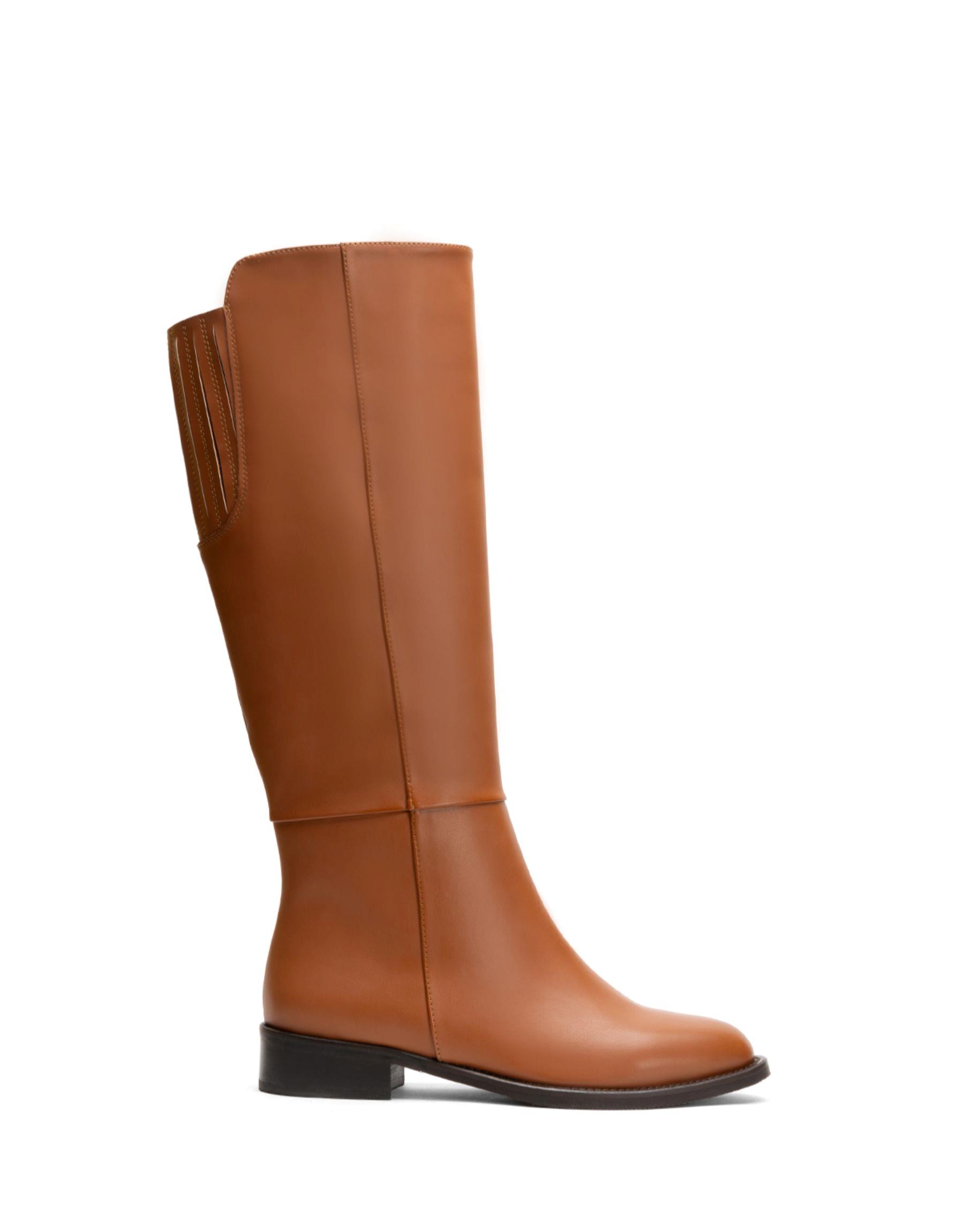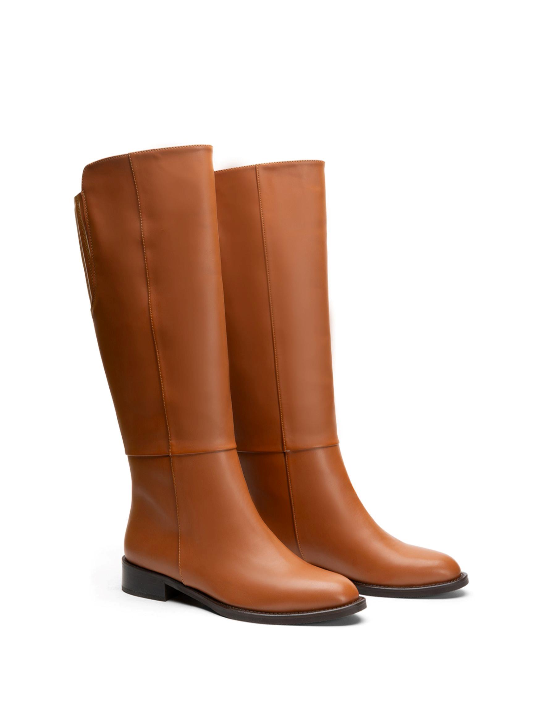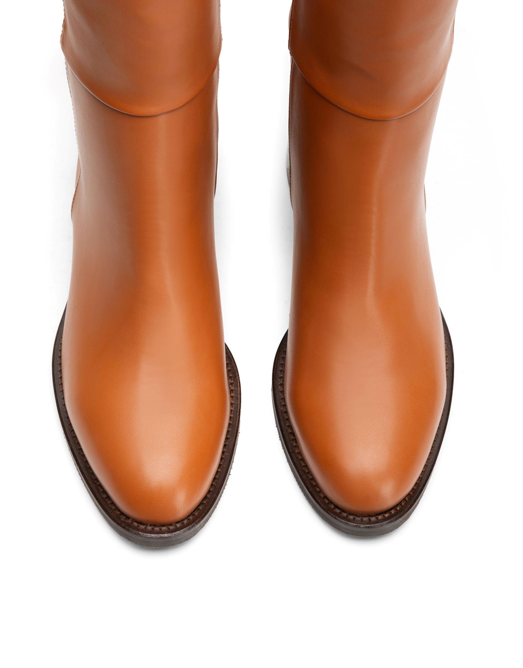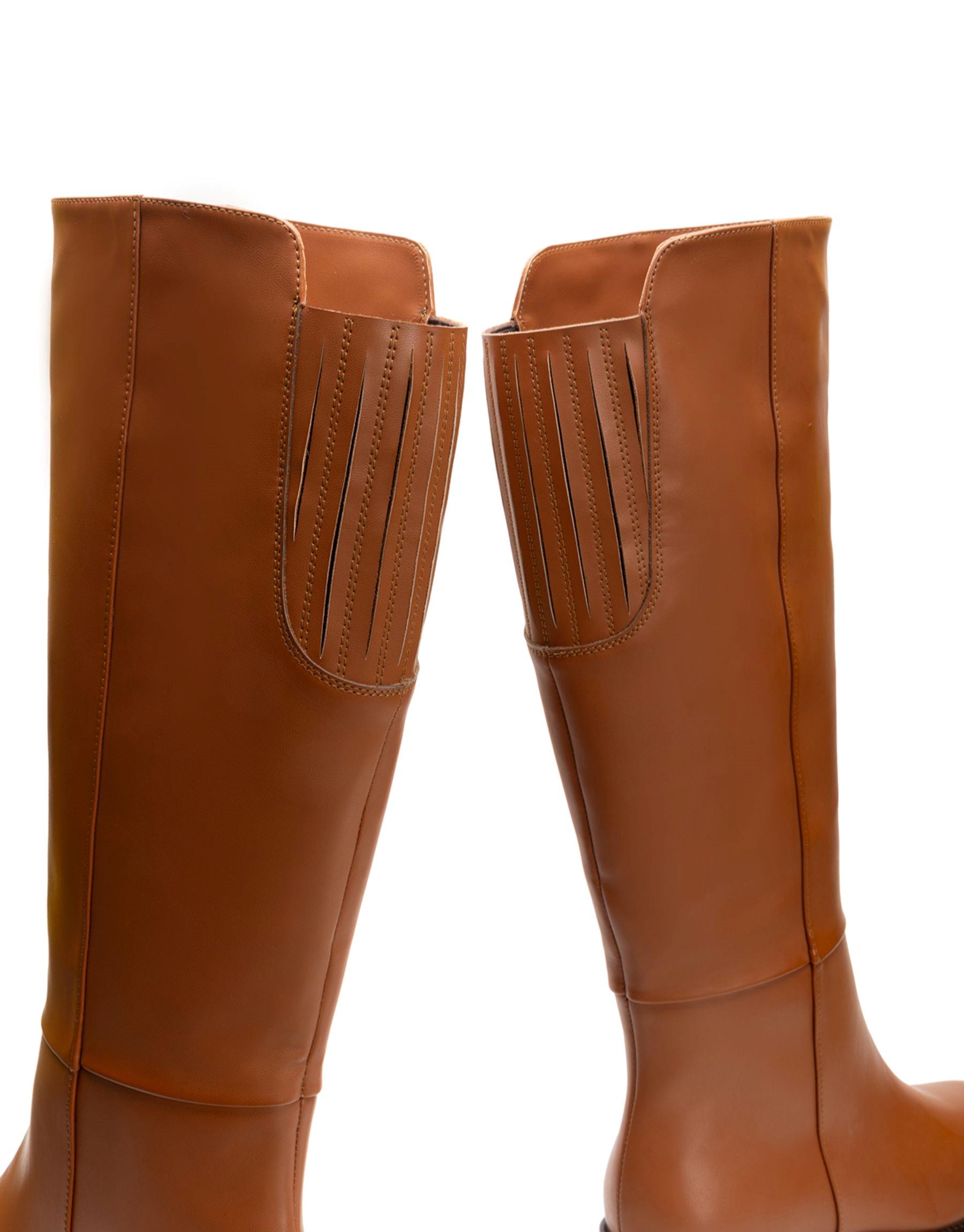 Çizi toka detaylı küt burun kahve deri çizme Kahve