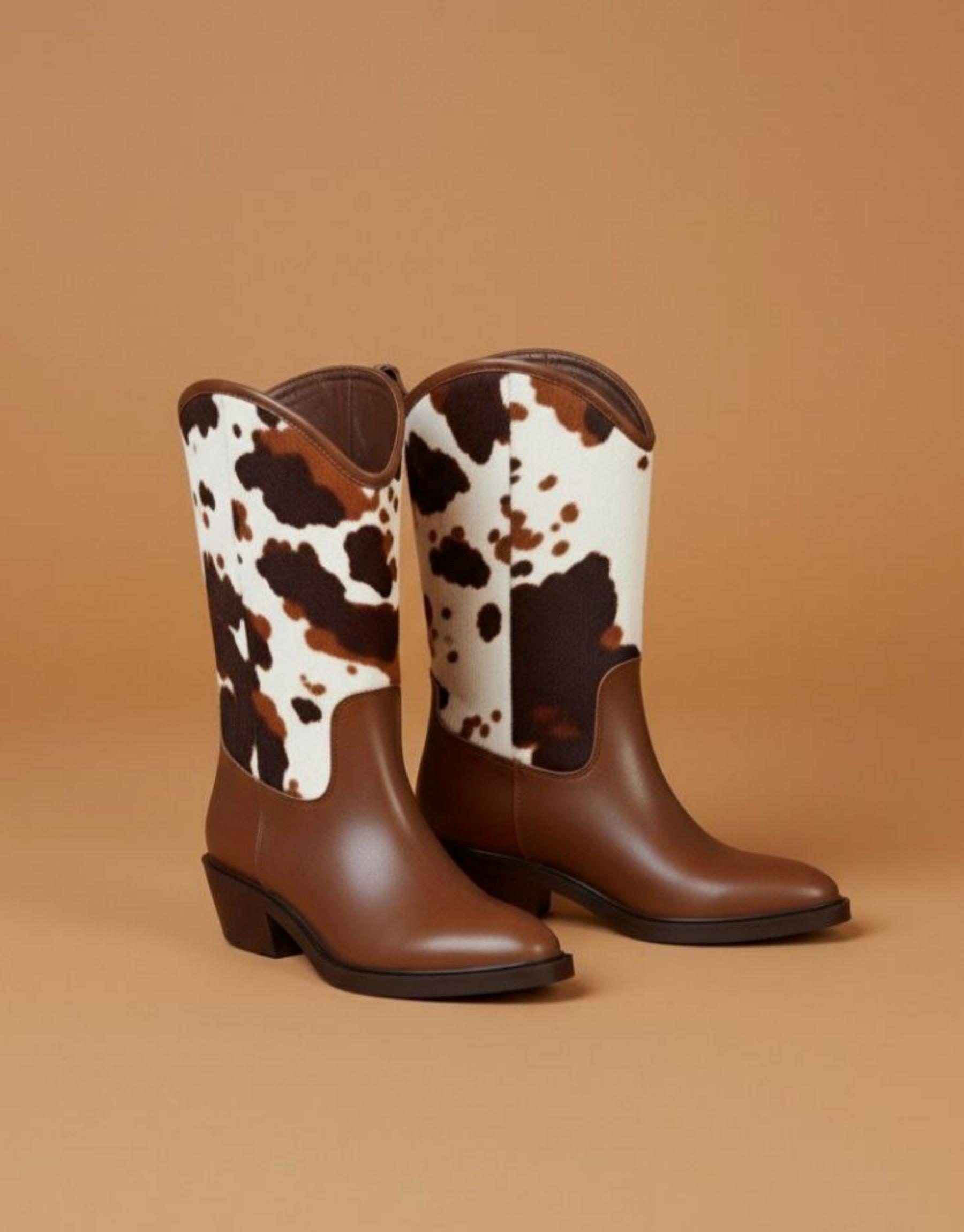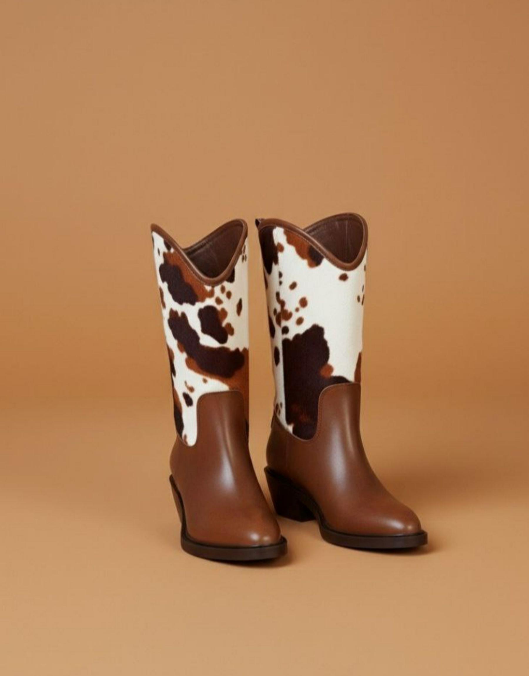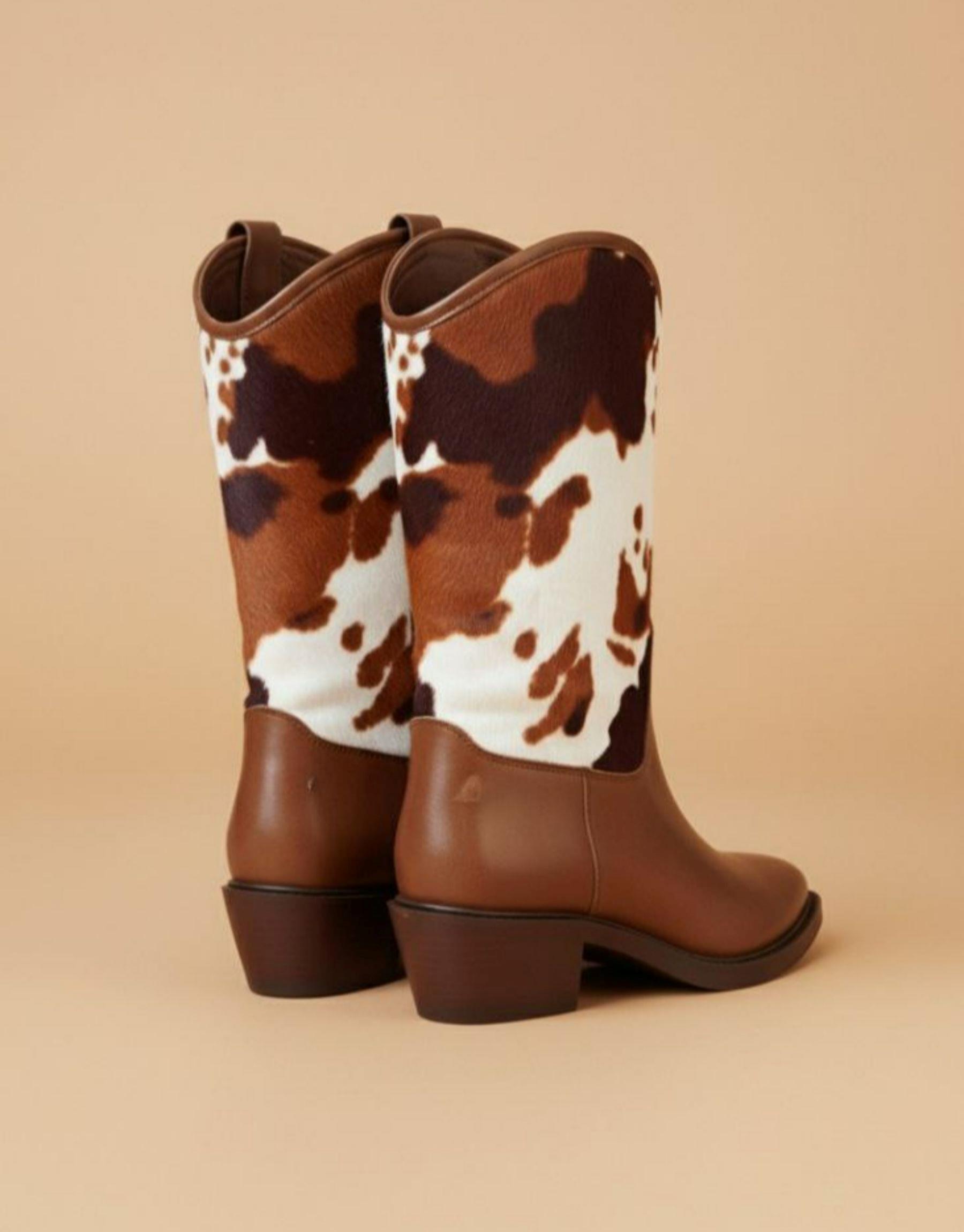 Western kovboy kürk detaylı taba deri bot Taba