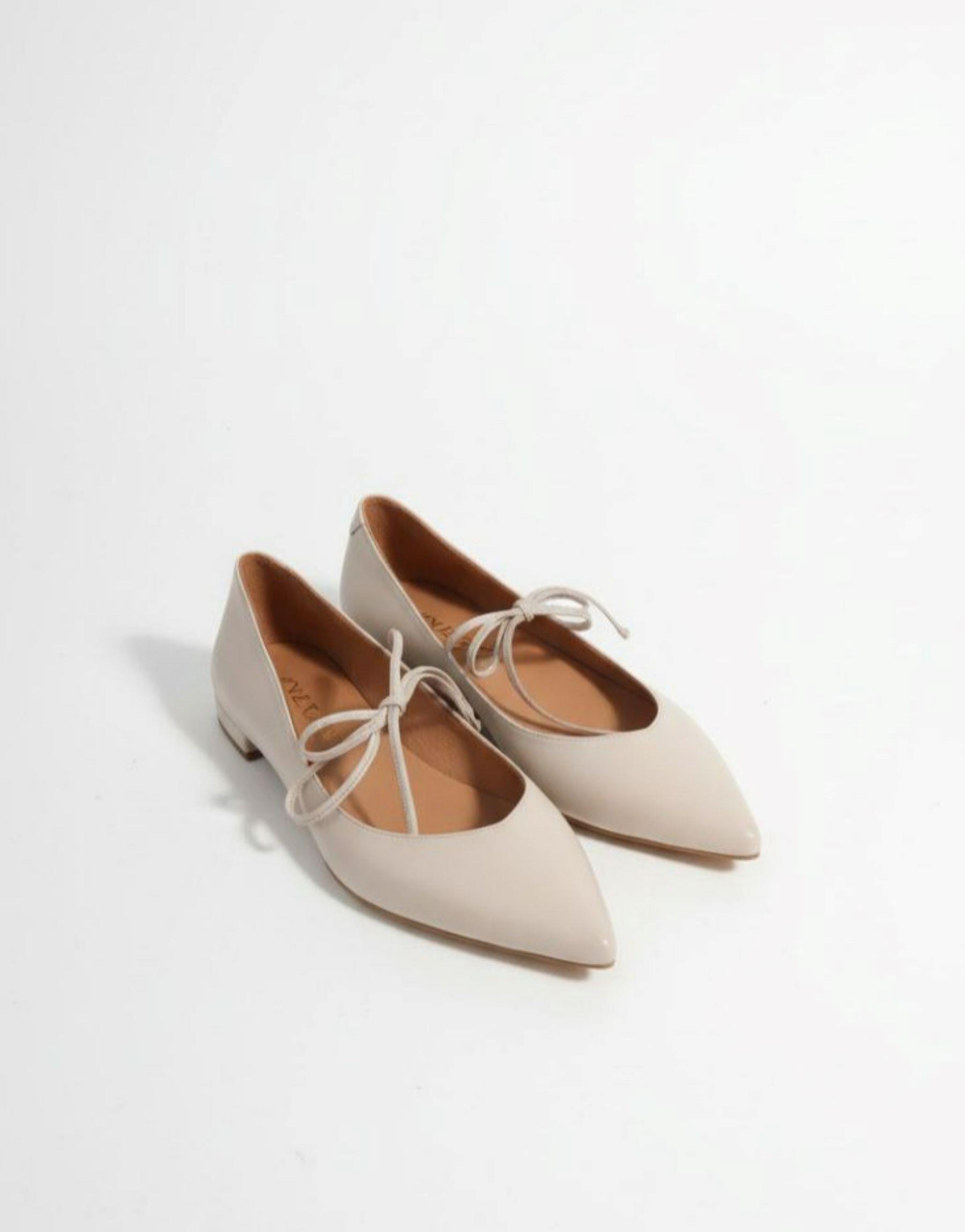 118 Sivri Burun Bağcık Detaylı Ten Renk Deri Babet | emienza