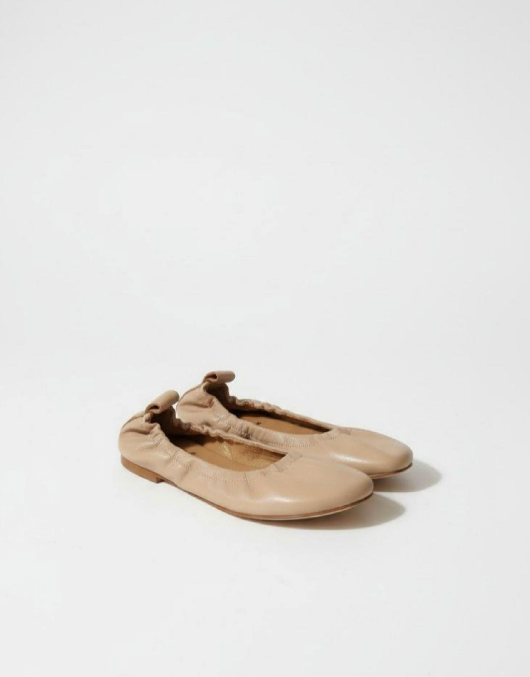 120 Yuvarlak Burun Lastik Detaylı Ten Renk Deri Babet | emienza